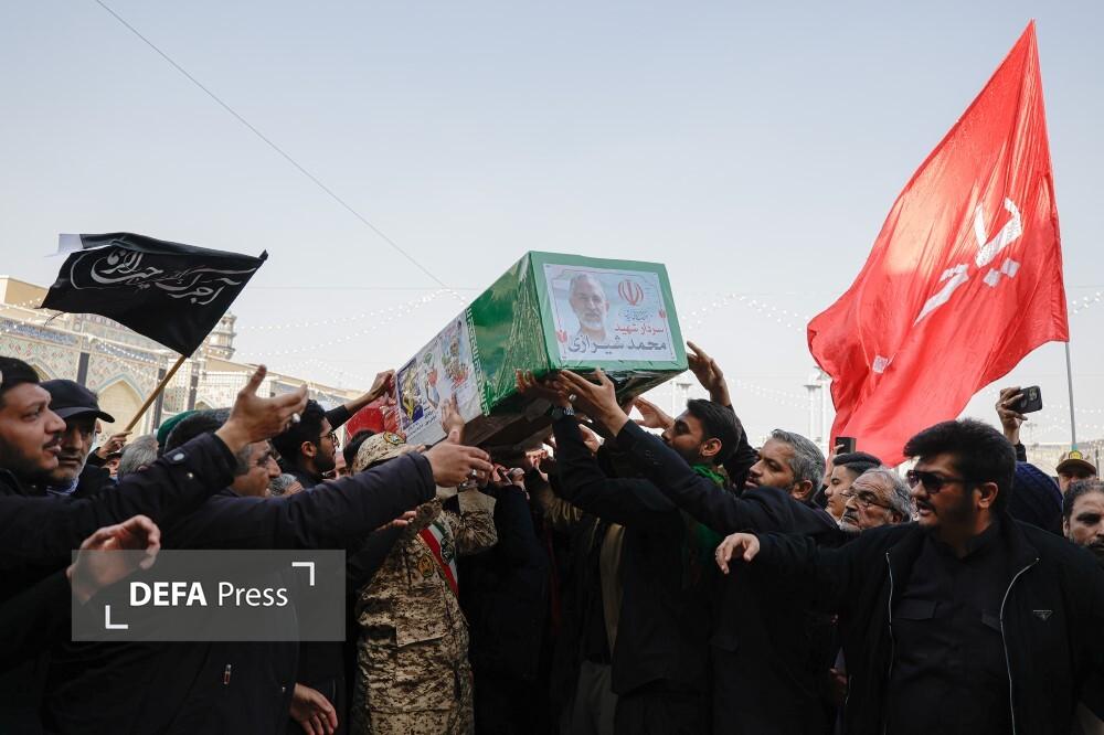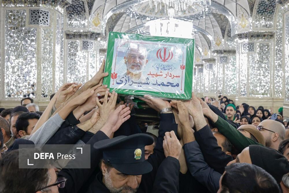 مراسم تشییع و تدفین پیکر شهیدان سرلشکر بسیجی «محمد شیرازی» رئیس دفتر نظامی فرمانده معظم کل قوا و سرگرد «مجتبی پارسا روش» سرتیم حفاظت رئیس شهید ستاد کل نیروهای مسلح، در حرم مطهر رضوی برگزار شد.