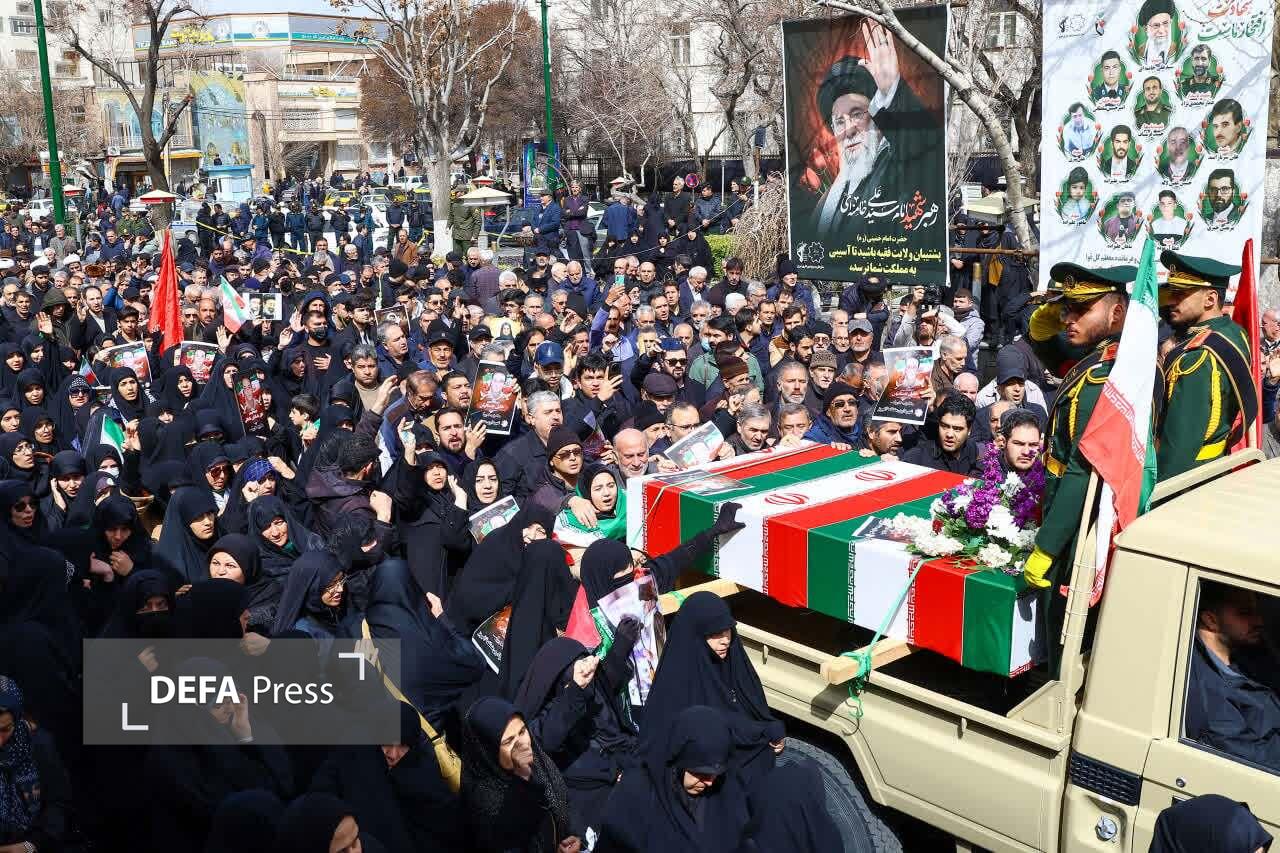 تصاویر/ مراسم تشییع و اقامه نماز بر پیکر مطهر ۳ شهید اقتدار آذربایجان شرقی