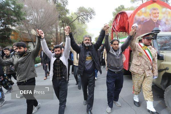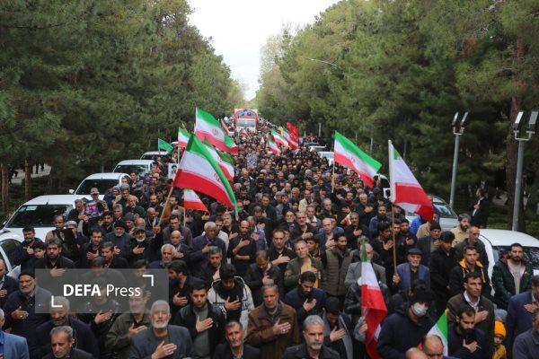 مراسم تشییع پیکرهای مطهر ۱۵ شهید کارگر استان اصفهان از شهدای جنایت اخیر آمریکا و اسرائیل در حمله به شهرک صنعتی جی اصفهان با حضور پرشور مردم از میدان فیض به سمت گلستان شهدای این شهر برگزار شد.