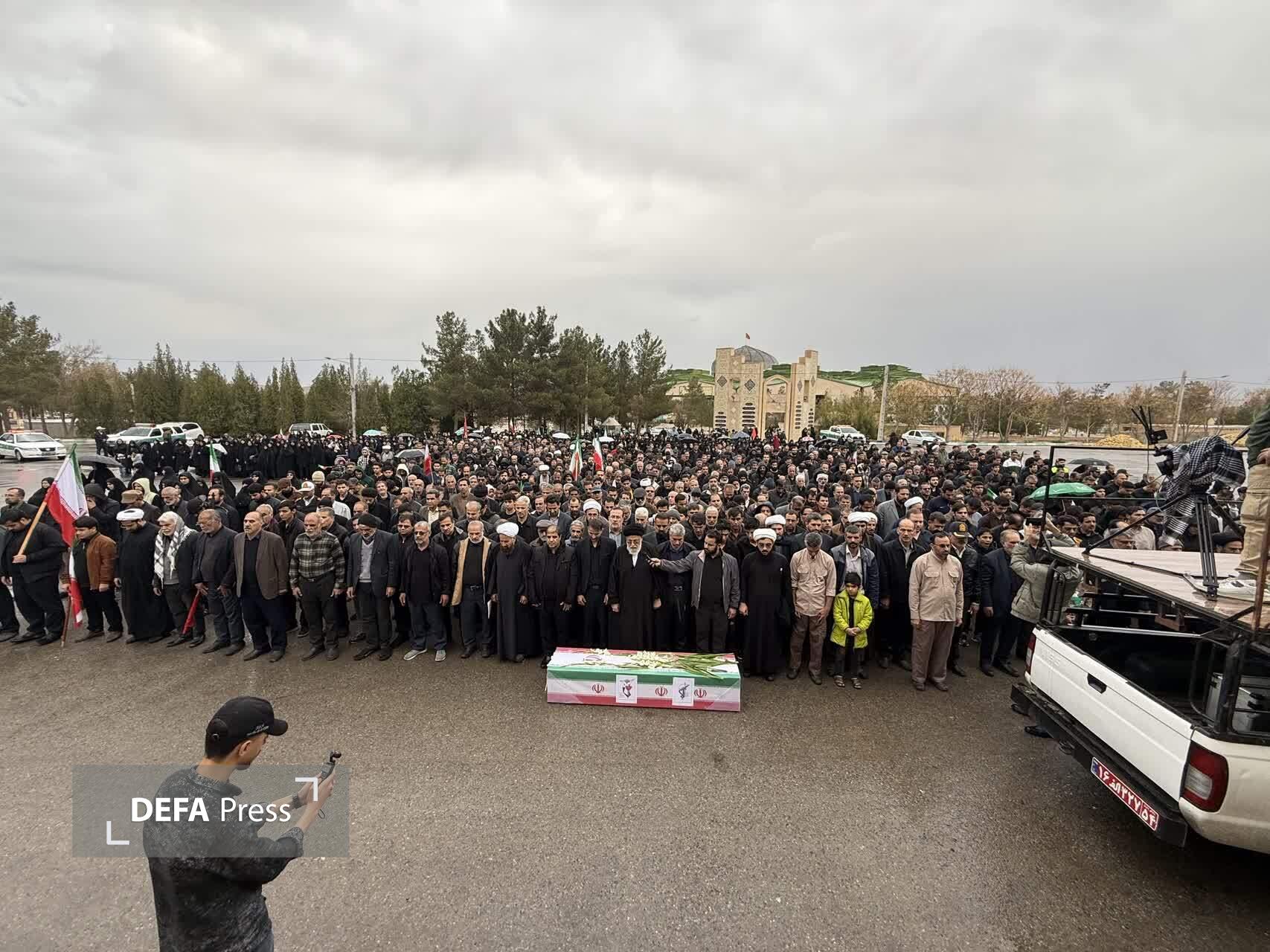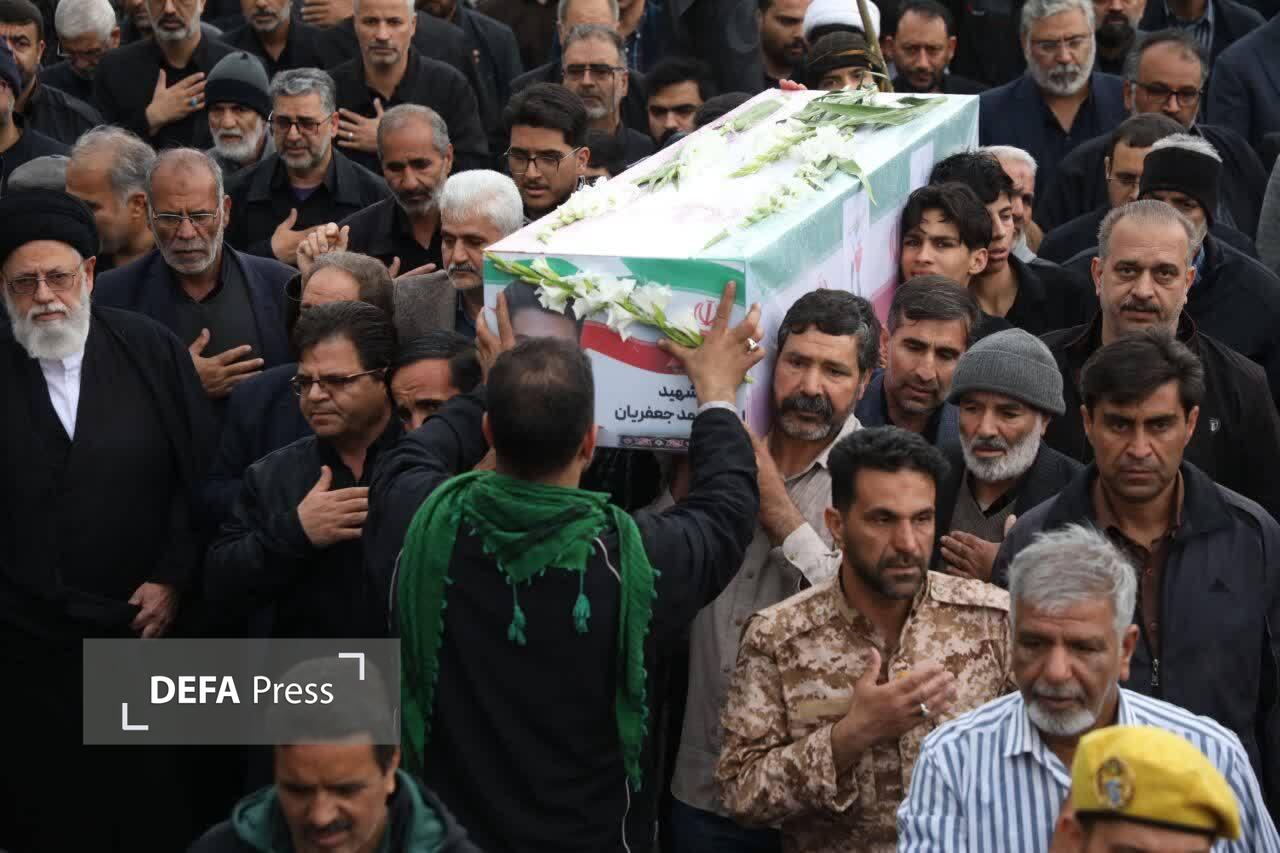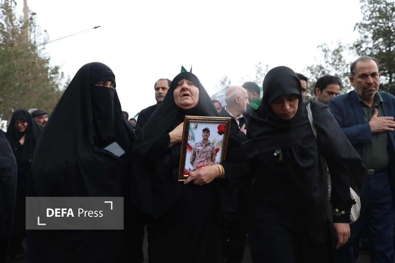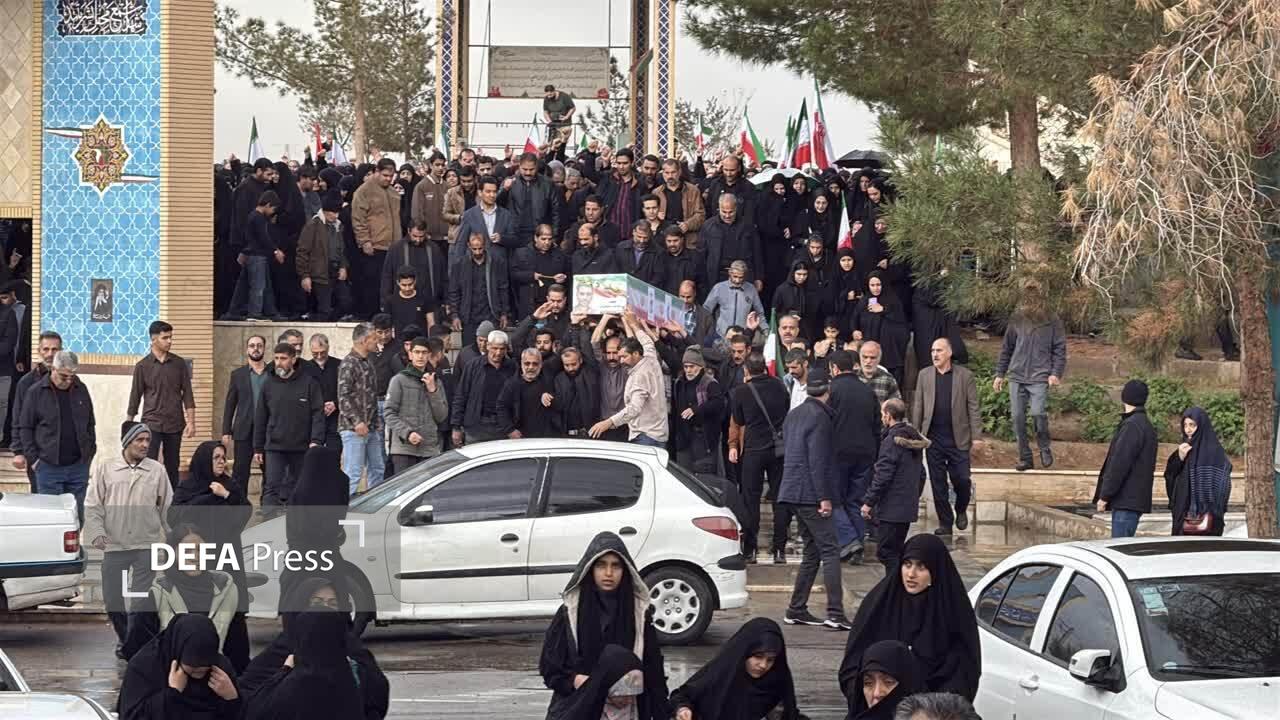 مراسم تشییع پیکر مطهر شهید مدافع وطن امیر محمد جعفریان در هوای بارانی بر دستان مردم شهیدپرور یزد برگزار شد.