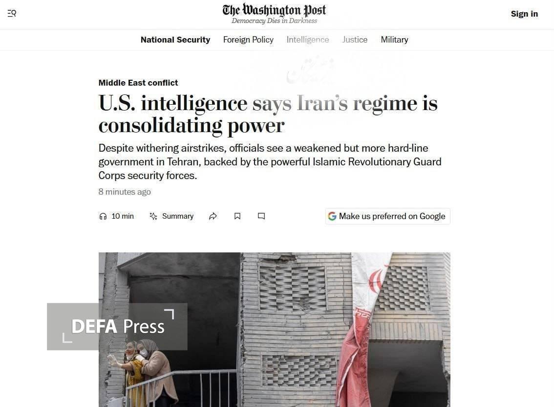 به گزارش گروه بین‌الملل دفاع‌پرس به نقل از واشنگتن پست، محافل اطلاعاتی آمریکا اعلام کردند: حکومت ایران قدرت خود را تثبیت کرده است.