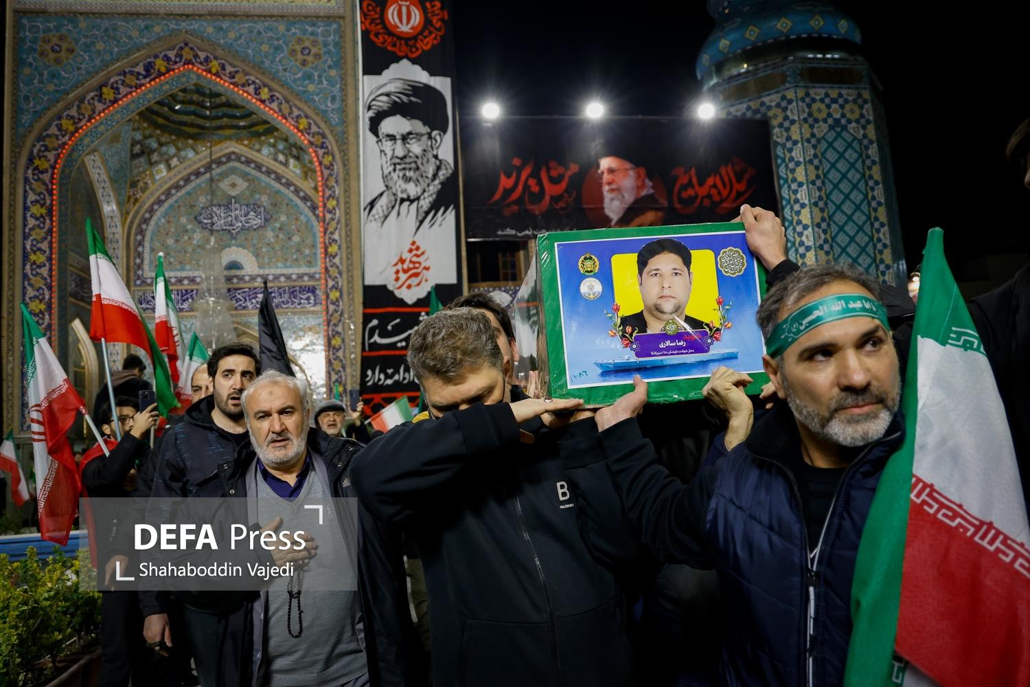 مراسم وداع با شهدای ناوشکن دنا، شامگاه سهشنبه ۲۶ اسفند ۱۴۰۴ با حضور سردار احمدرضا رادان فرمانده فراجا و حضور گسترده اقشار مختلف مردم در میدان تجریش تهران تا امامزاده صالح (ع) برگزار شد.