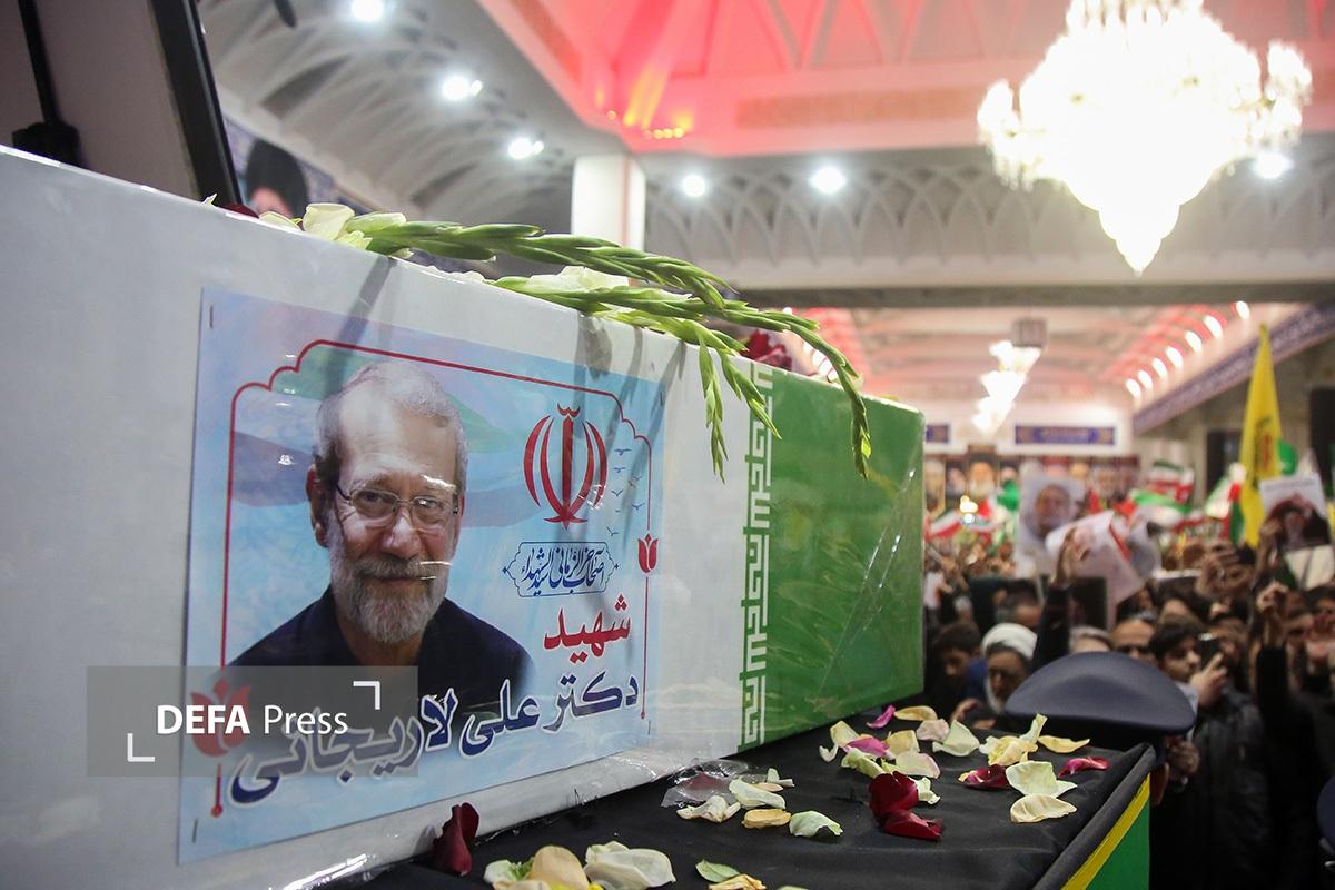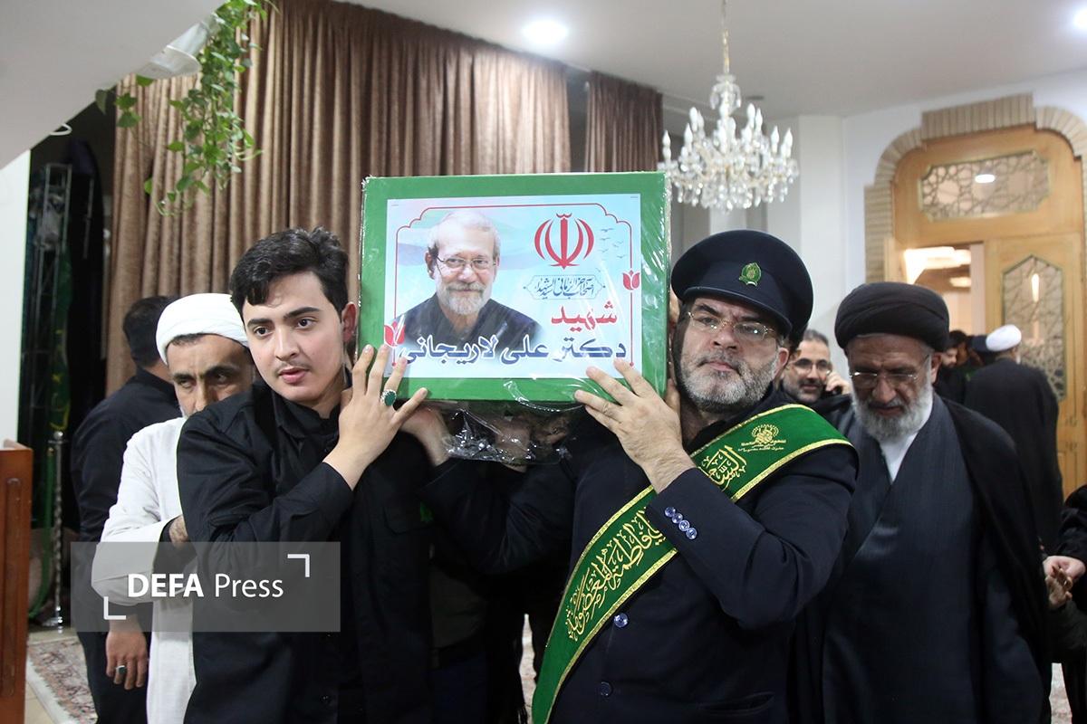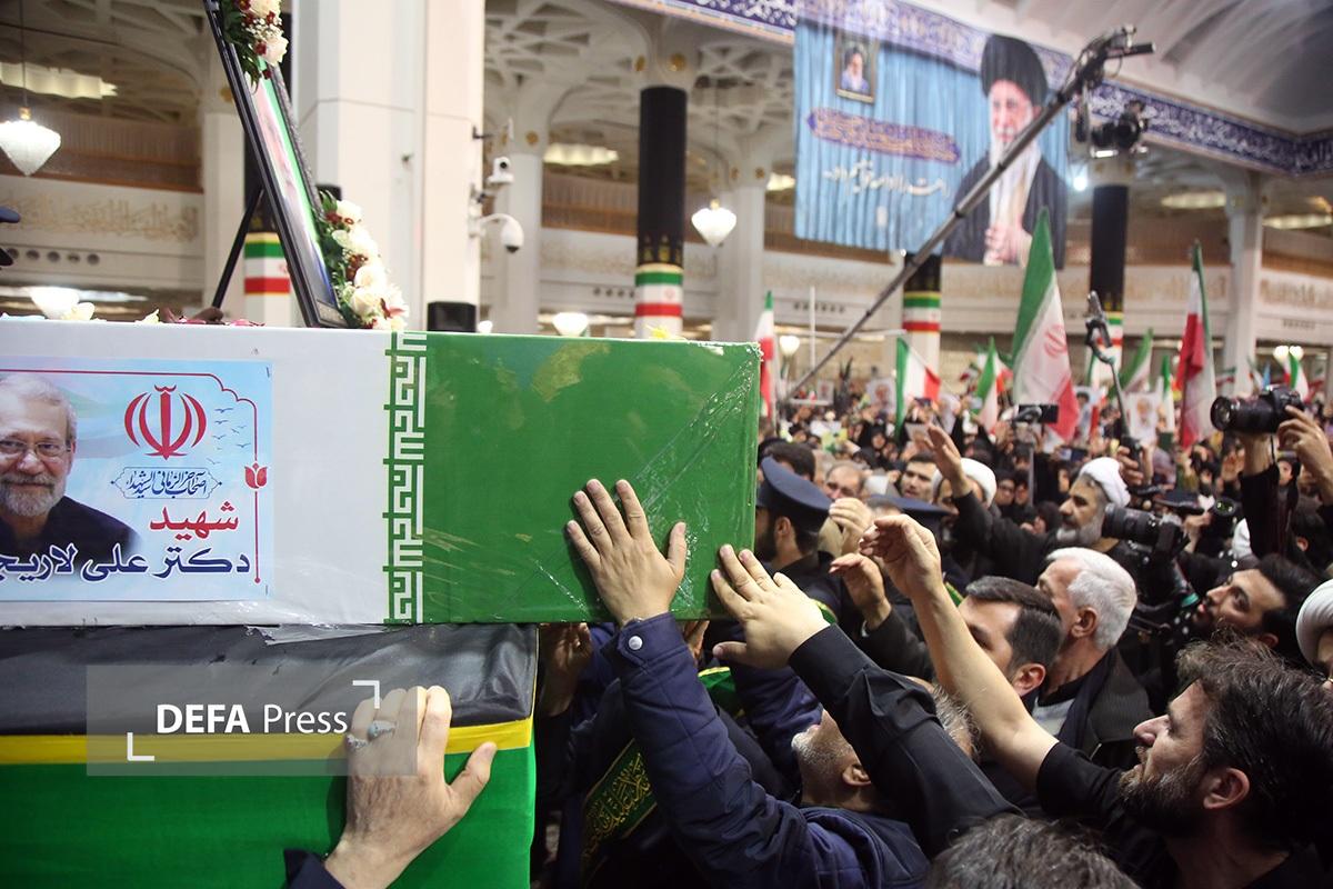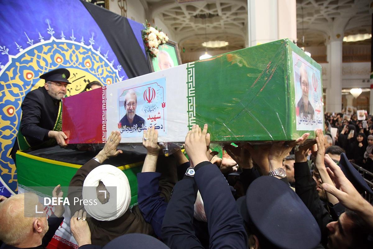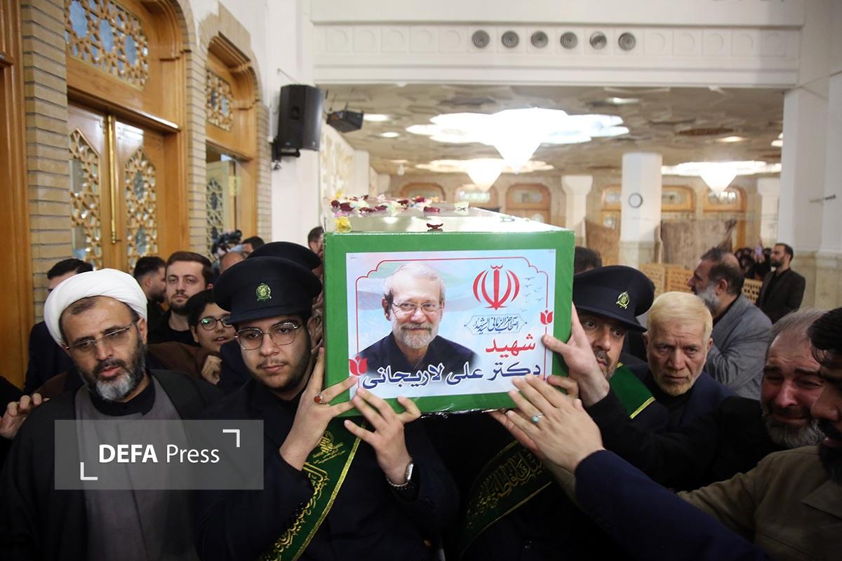 آیین وداع با پیکر مطهر شهید «علی لاریجانی» دبیر شورای عالی امنیت ملی و پسرش «مرتضی» که در حملات وحشیانه آمریکایی صهیونی به درجه رفیع شهادت نائل آمدند، با حضور پرشور زائران و مجاوران حرم حضرت معصومه(س) در شبستان امام خمینی(ره) این حرم نورانی برگزار شد.