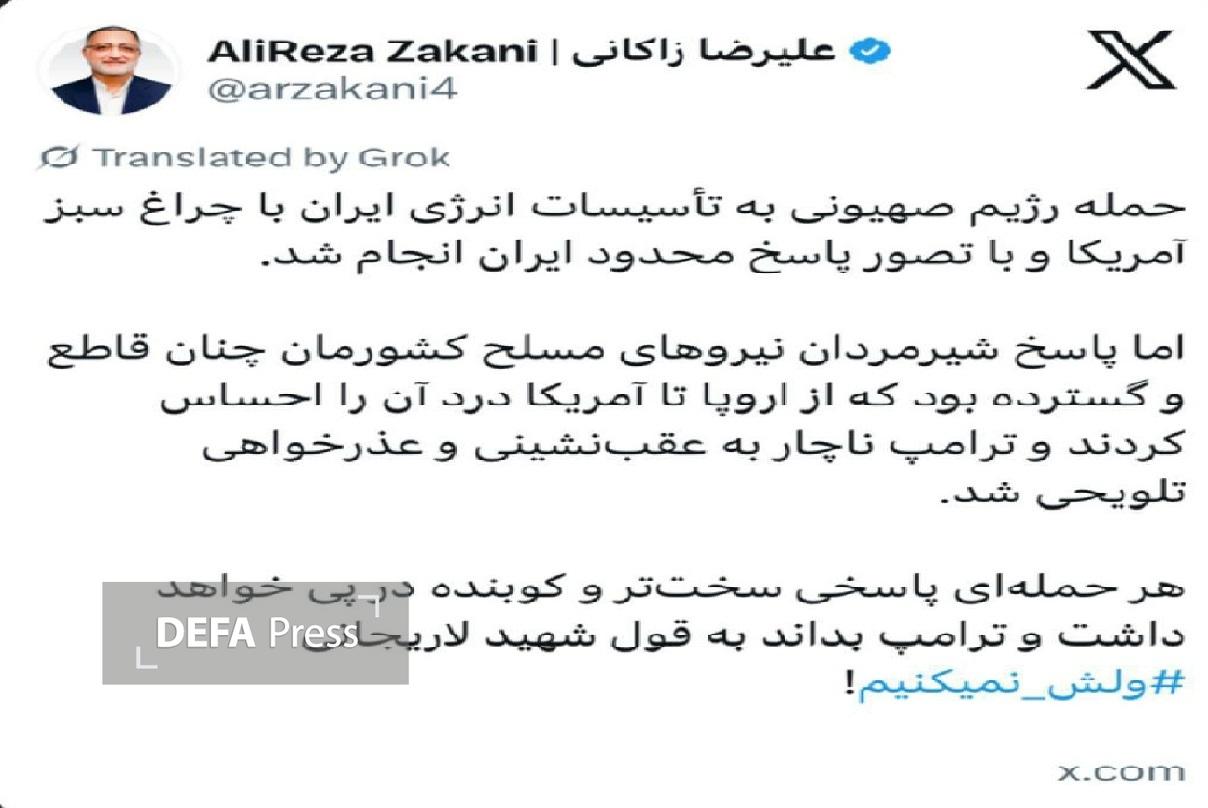 به گزارش گروه جامعه دفاعپرس، علیرضا زاکانی شهردار تهران در صفحه اجتماعی ایکس نوشت:حمله رژیم صهیونیستی به تأسیسات انرژی ایران با چراغ سبز آمریکا و تصور پاسخ محدود ایران انجام شد. اما پاسخ شیرمردان نیروهای مسلح کشورمان چنان قاطع و گسترده بود که از اروپا تا آمریکا درد آن را احساس کردند و ترامپ ناچار به عقبنشینی و عذرخواهی تلویحی شد.
