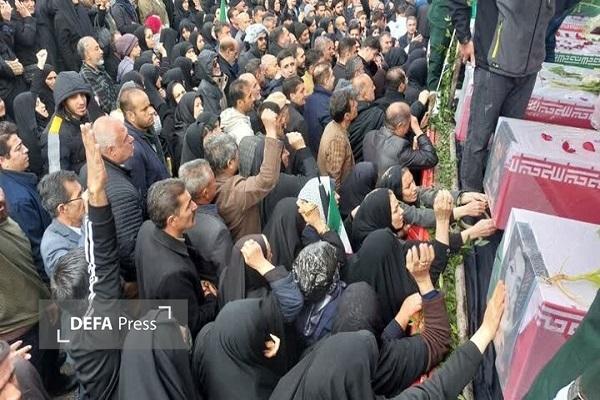 پیکر ۱۳ شهید حمله جنایتکارانه دشمن صهیونیستی - آمریکایی در دورود تشییع و به خاک سپرده شدند.