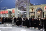 آیین تحویل سال نو با حضور حدود ۶۰۰ هزار زائر و مجاور در صحنها و رواقهای حرم امام رضا (ع) برگزار شد.