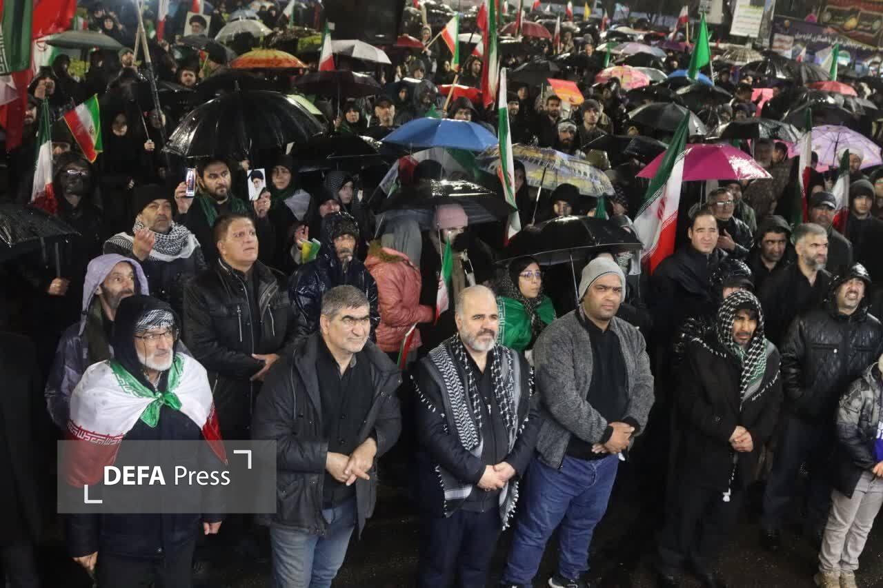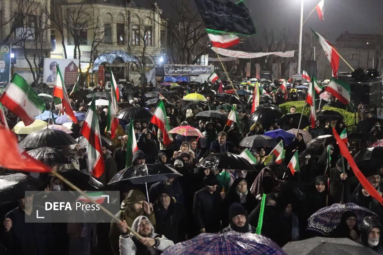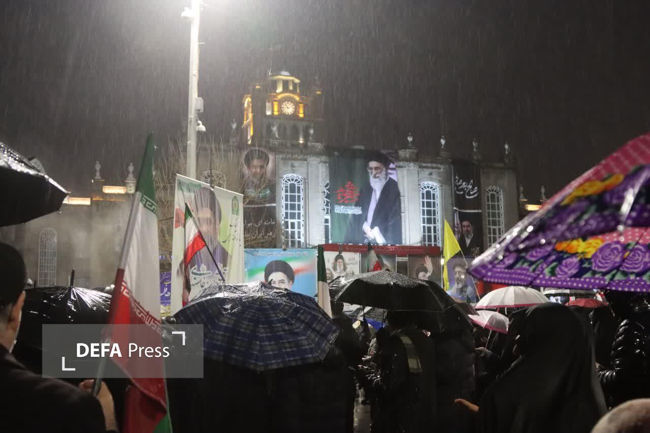 تصاویر/ اجتماع بـزرگ مردم ولایتمدار شهر تبریز زیر باران رحمت الهی در میدان ساعت