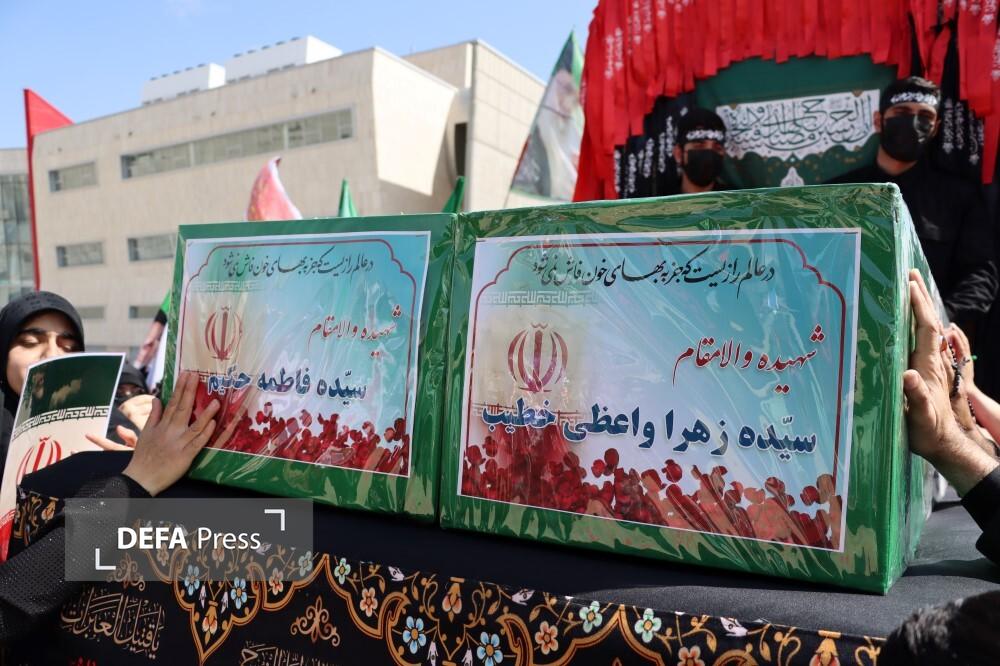 پیکرهای مطهر وزیر شهید اطلاعات جمهوری اسلامی، همسر و فرزند وی و شهید سرهنگ دوم پاسدار «امیر علیزاده»؛ بر روی دوش زائران و مجاوران حریم مطهر رضوی از عرصه میدان شهدای مشهد تا حرم امام هشتم تشییع شدند.