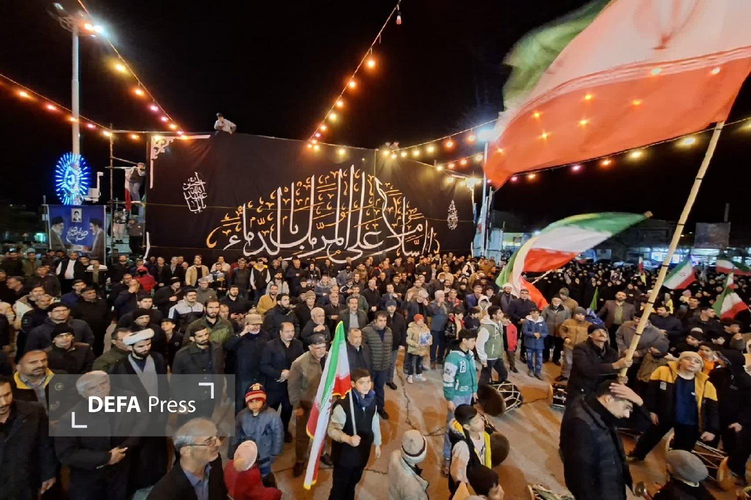حماسه حضور مردم شهر سریش آباد قروه کردستان؛ حضور با شکوه مردم خستگی ناپذیر شهر شهید پرور سریش آباد در شب ۲۴ از آغاز جنگ تحمیلی آمریکایی صهیونی، در راستای لبیک به رهبر و کشور و نیروهای مسلح ایران.