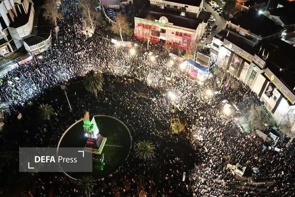 اینجا هر شب، موجی از جمعیت برای خونخواهی قائد شهید امت و شهیدان جنگ رمضان بهسوی میدان وحدت میآیند و فریاد نه سازش نه تسلیم نبرد با آمریکا را سر میدهند.