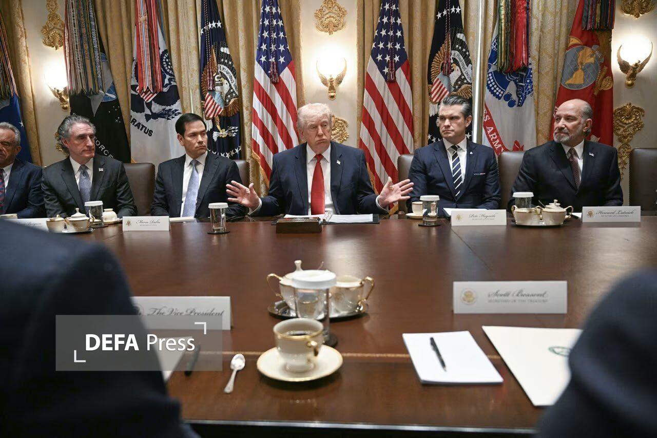 به گزارش گروه بین‌الملل دفاع‌پرس، «دونالد ترامپ» روز پنجشنبه به وقت محلی در نشست اعضای کابینه دولت خود در کاخ سفید، به موضوعات مختلفی از جمله تکرار ادعا‌های پیشین خود مبنی بر مذاکره با تهران روی آورد و در بخش دیگری تلاش کرد جنایات ارتش آمریکا در ایران را در قالب توانمندی ارتش ایالات متحده معرفی کند.