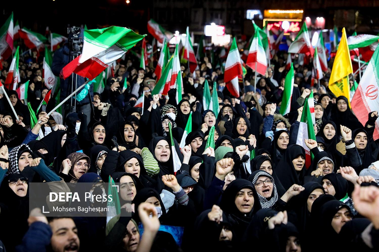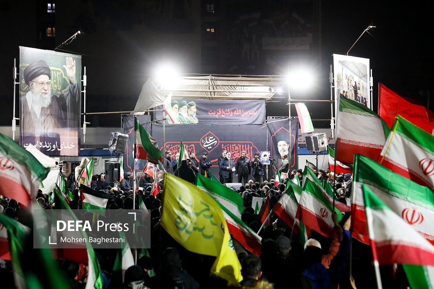 مردم تهران شامگاه شنبه با تجمع در میدان انقلاب ضمن محکومیت جنایات آمریکایی - صهیونیستی حمایت خود را از رهبر معظم انقلاب و نیروهای مسلح ابراز کردند.