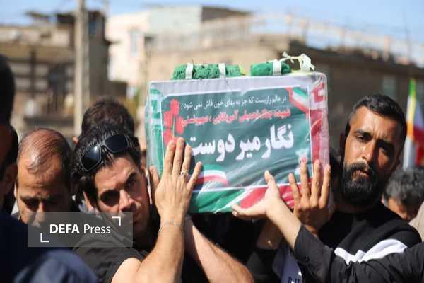 اقشار مختلف مردم، مسئولان اجرایی، نظامی، انتظامی زبرخان و مدیران واحدهای صنعتی شهرک صنعتی خیام ضمن شرکت در مراسم تشییع پیکر مطهر شهیده والامقام؛ میردوست با شکوهی مثال زدنی به استقبال ایشان رفته و با دستهایی که به تمنای شفاعت شهدا در آخرت به سوی تابوت پیکر پاک ایشان بلند است به مسیر عاشقی رفتند که با لبیک یا حسین علیه السلام و لبیک یا زینب (س) همراه بود.