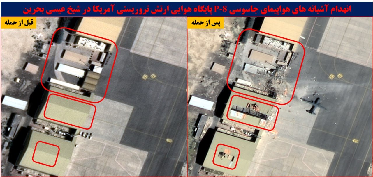 به گزارش گروه دفاعی و امنیتی دفاع‌پرس، پایگاه هوایی ارتش تروریستی آمریکا در بحرین منهدم شد.