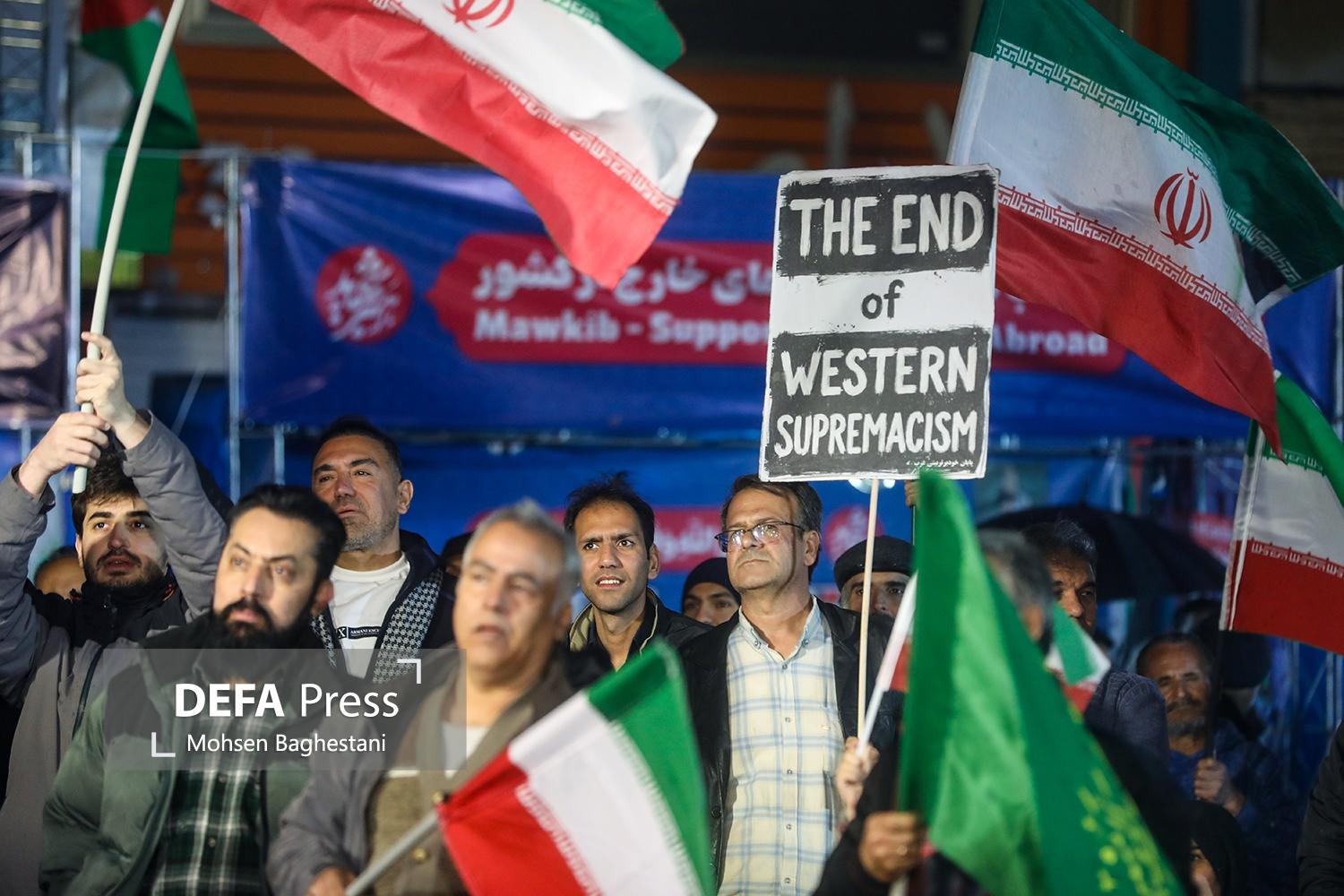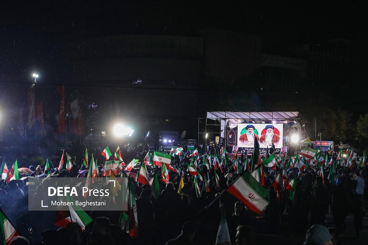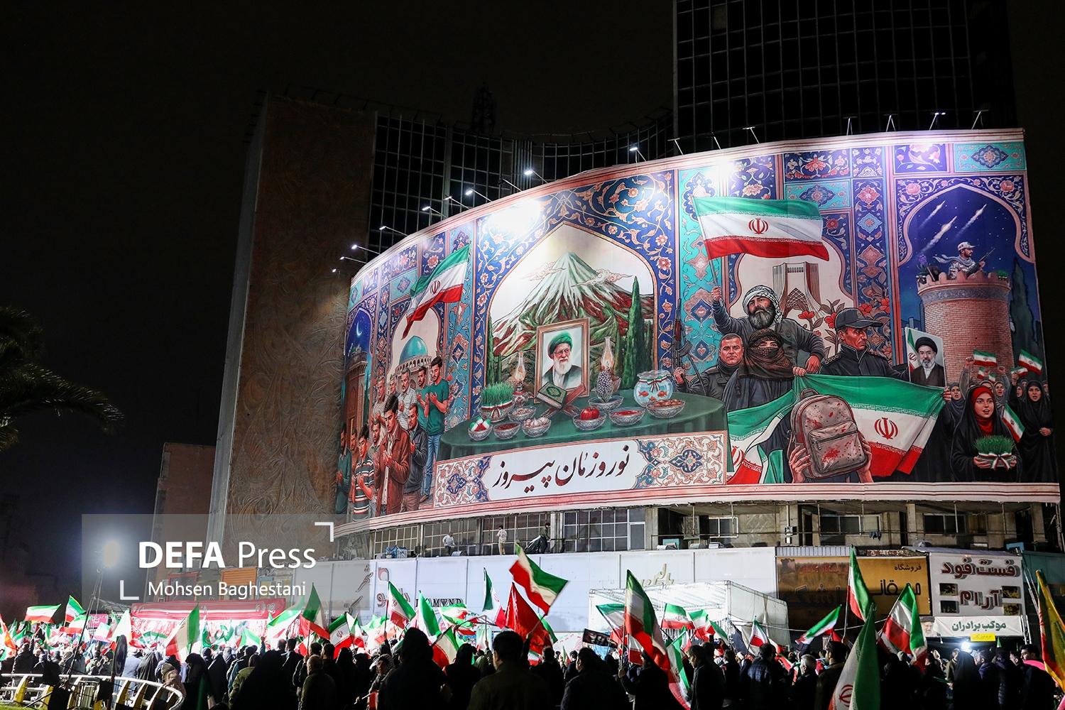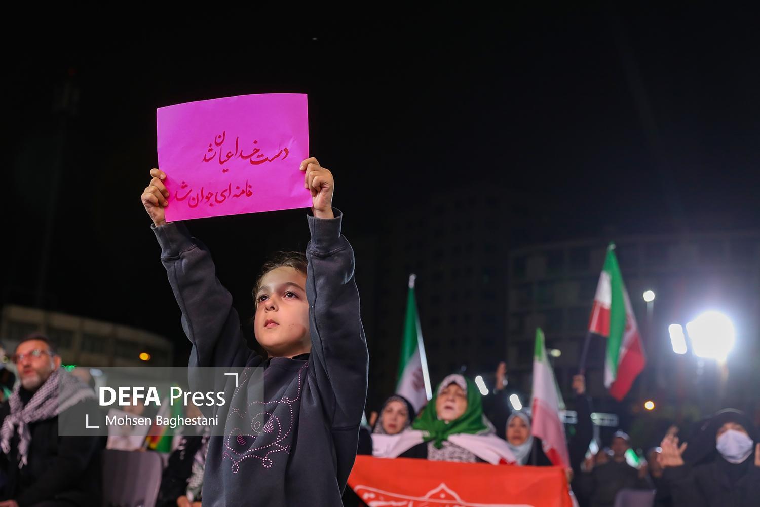 مردم تهران شامگاه شنبه با تجمع در میدان ولیعصر (عج) ضمن محکومیت جنایات آمریکایی - صهیونیستی حمایت خود را از رهبر معظم انقلاب و نیروهای مسلح ابراز کردند.