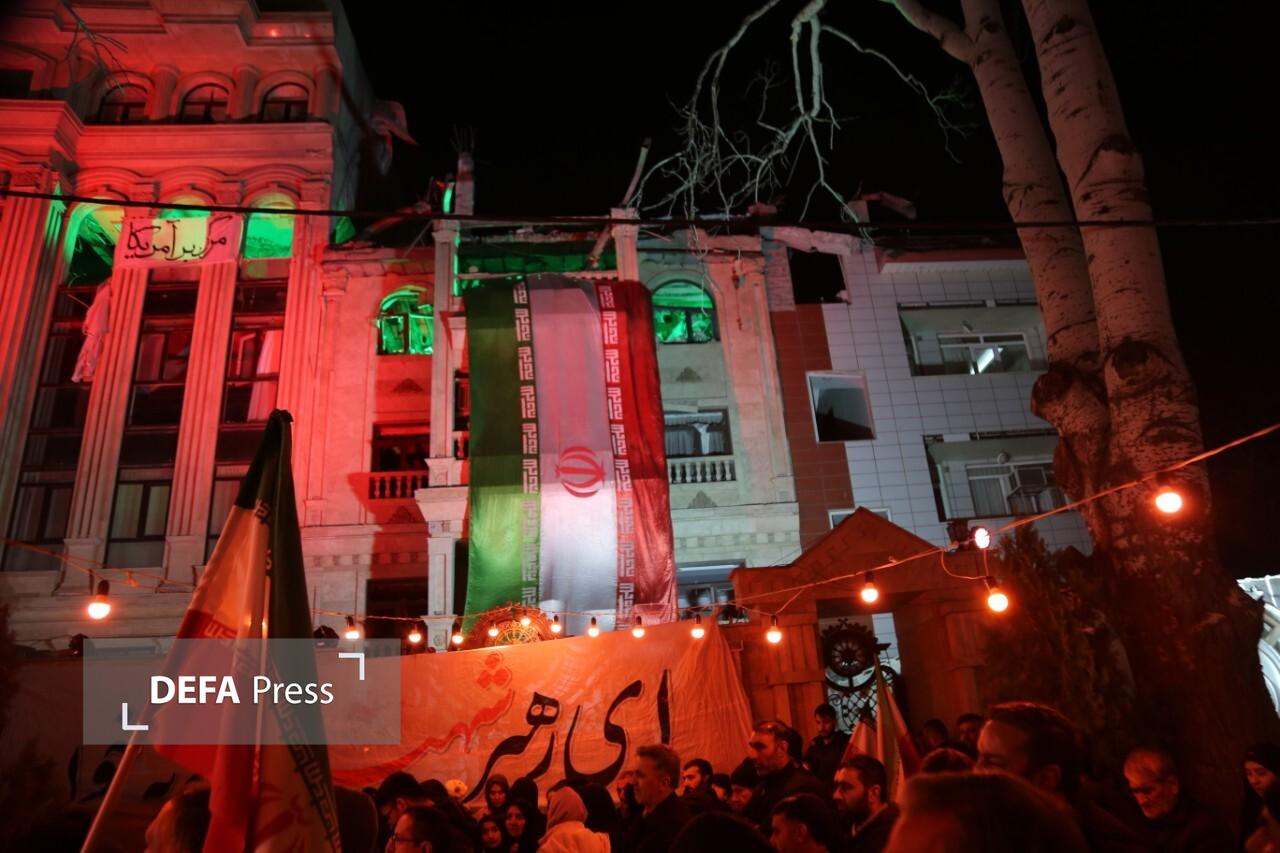 دومین اجتماع مردمی فدائیها در محل اصابت موشک آمریکائی-صهیونی برگزار شد.