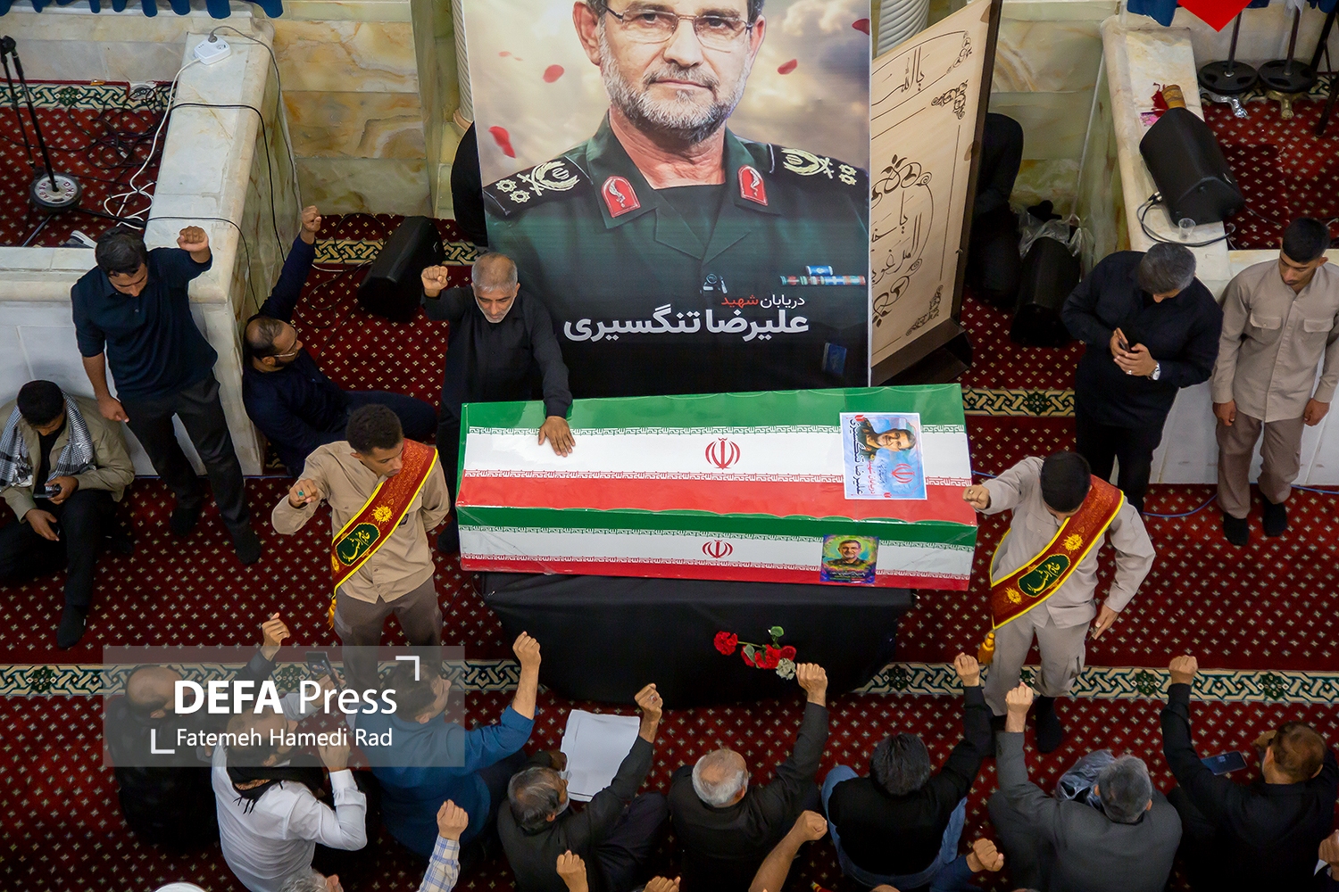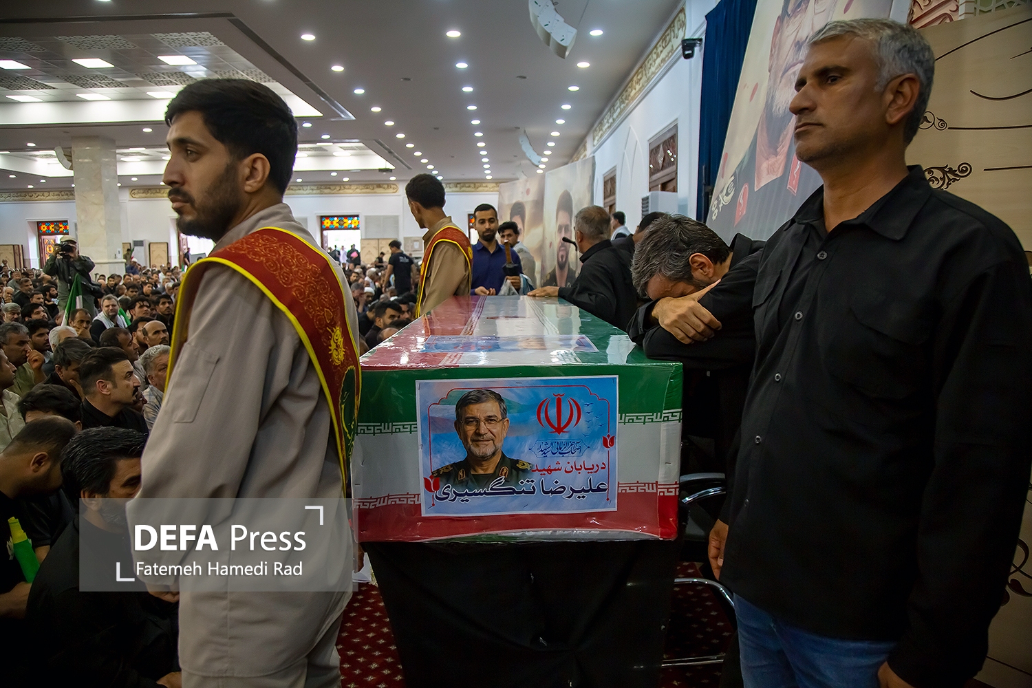 آئین تشییع دریابان شهید علیرضا تنگسیری فرمانده نیروی دریایی سپاه پاسداران صبح امروز با حضور پرشور مردم شهیدپرور بندرعباس برگزار شد.
