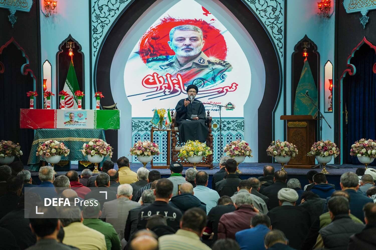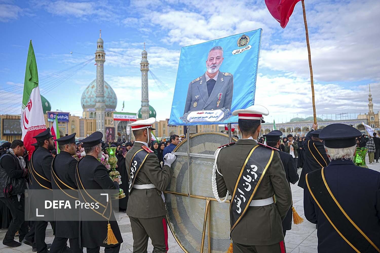 مراسم قرائت دعای ندبه امروز مسجد مقدس جمکران همراه با وداع عاشقان و منتظران امام زمان(عج) با پیکر مطهر سرباز ایران امیر شهید سپهبد سید عبدالرحیم موسوی رئیس فقید ستادکل نیروهای مسلح برگزار شد.