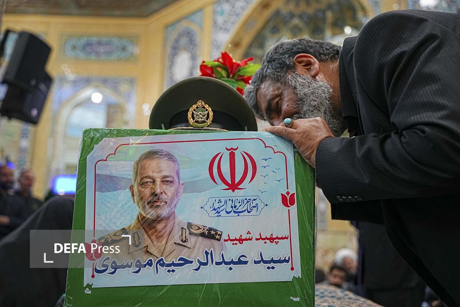 آیین وداع خانوادگی با پیکر مطهر سرباز ایران، امیر سپهبد شهید «سید عبدالرحیم موسوی» رئیس فقید ستادکل نیروهای مسلح با روایتگر حاج حسین یکتا و مرثیه سرایی حسن شالبافان در مسجد مقام مسجد مقدس جمکران برگزار شد.