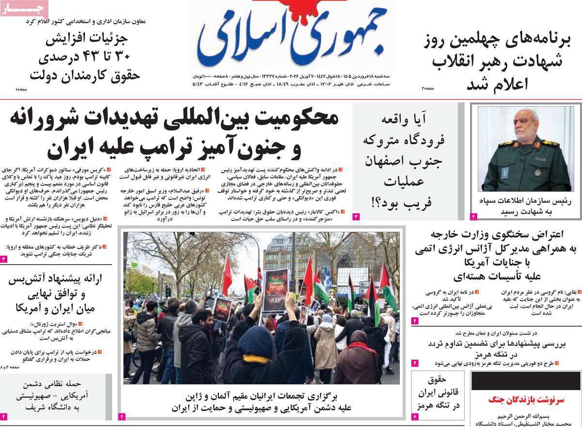 روزنامههای هجدهم فروردین ۱۴۰۵