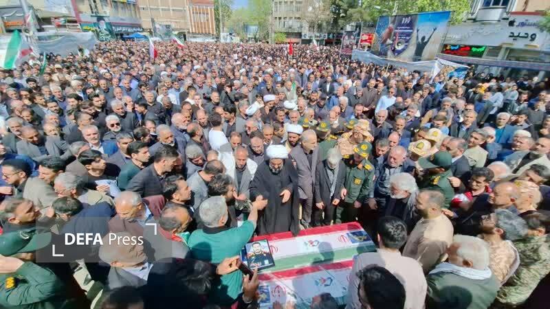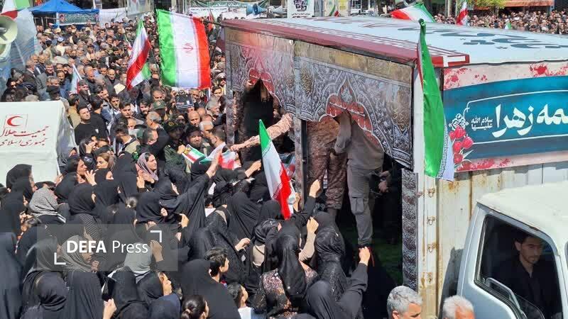 مراسم تشییع پیکر شهدای والامقام «هادی بابایی» و «امید شاهین فرد» با حضور مردم بصیر و ولایتمدار شهرستان پارس آباد برگزار و درگلزار شهدای وادی الرحمه آین شهرستان آرام گرفت.