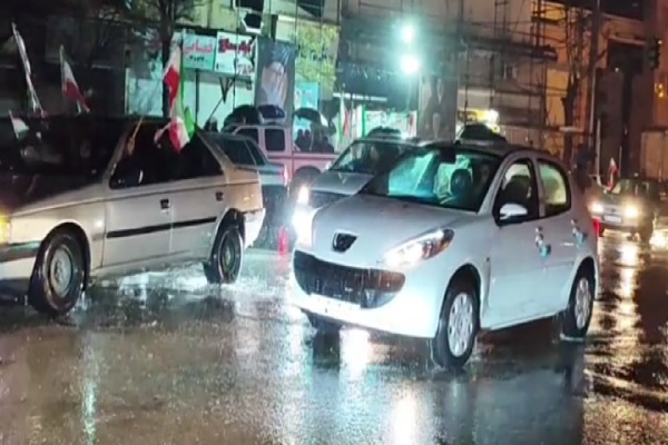با وجود بارش شدید باران، گروهی از شهروندان شهرستان مریوان استان کردستان، امشب هم با تجمع و رژه خودروی در میدان شبرنگ حضور یافتند و اعلام کردند: برای نشاندادن حمایت خود از رهبر انقلاب، رزمندگان اسلام و نظام جمهوری اسلامی در خیابانها میمانند.