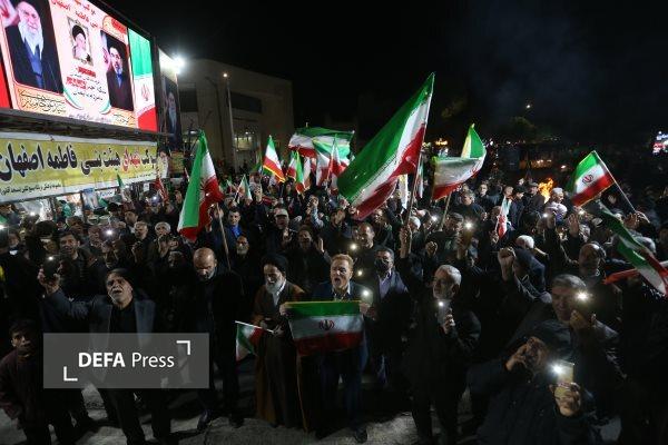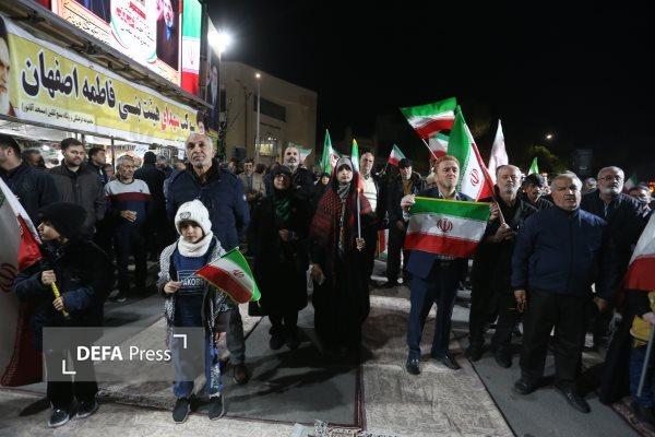 مردم غیور و جان برکف اصفهان در سی و ششمین شب حضور خود در خیابان‌ها و میدان‌های شهر، به دشمنان فهماند که برای دفاع ازمیهن عزیزشان ایران وحراست و پاسداری از انقلاب اسلامی تا پای جان ایستادند.