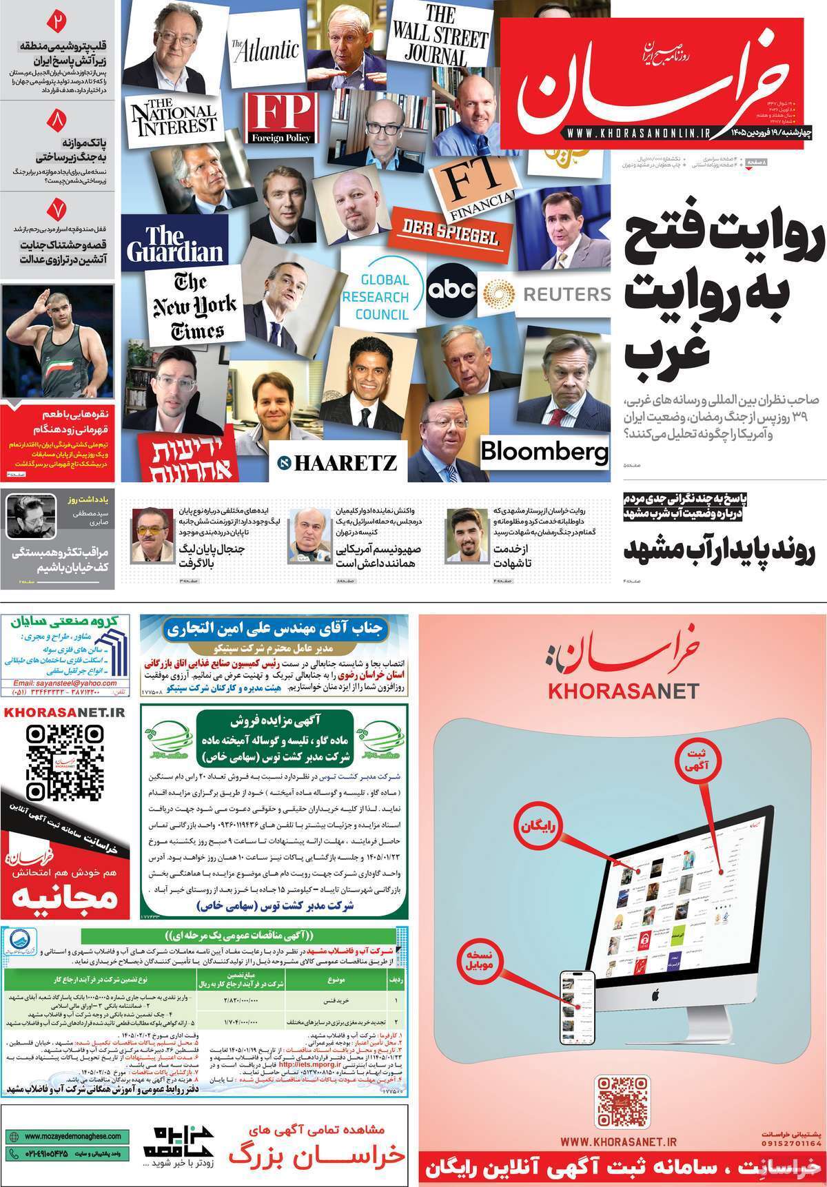 روزنامههای نوزدهم فروردین ۱۴۰۵