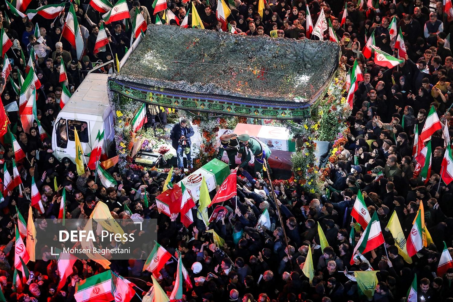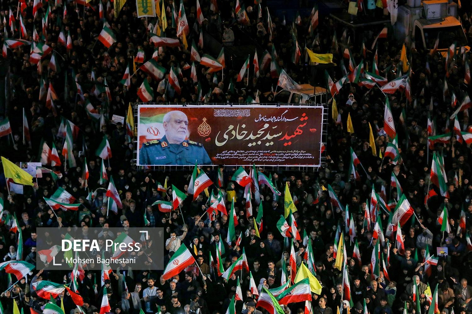 مراسم وداع و تشییع سردار شهید مجید خادمی رییس سازمان اطلاعات سپاه شامگاه چهارشنبه در میدان انقلاب اسلامی برگزار شد.