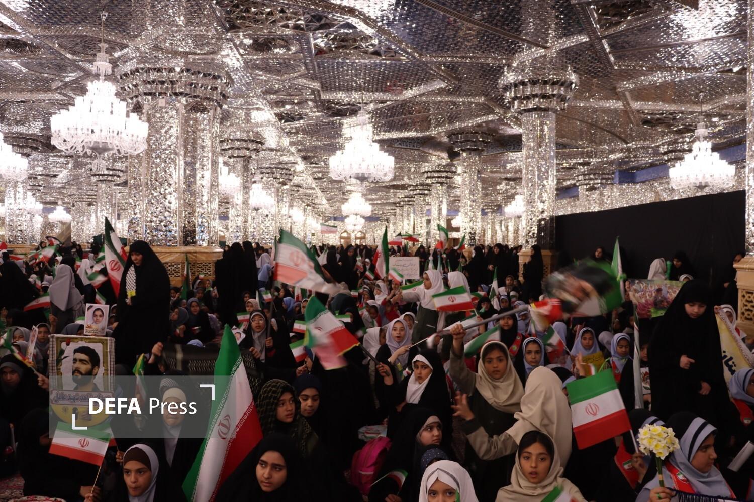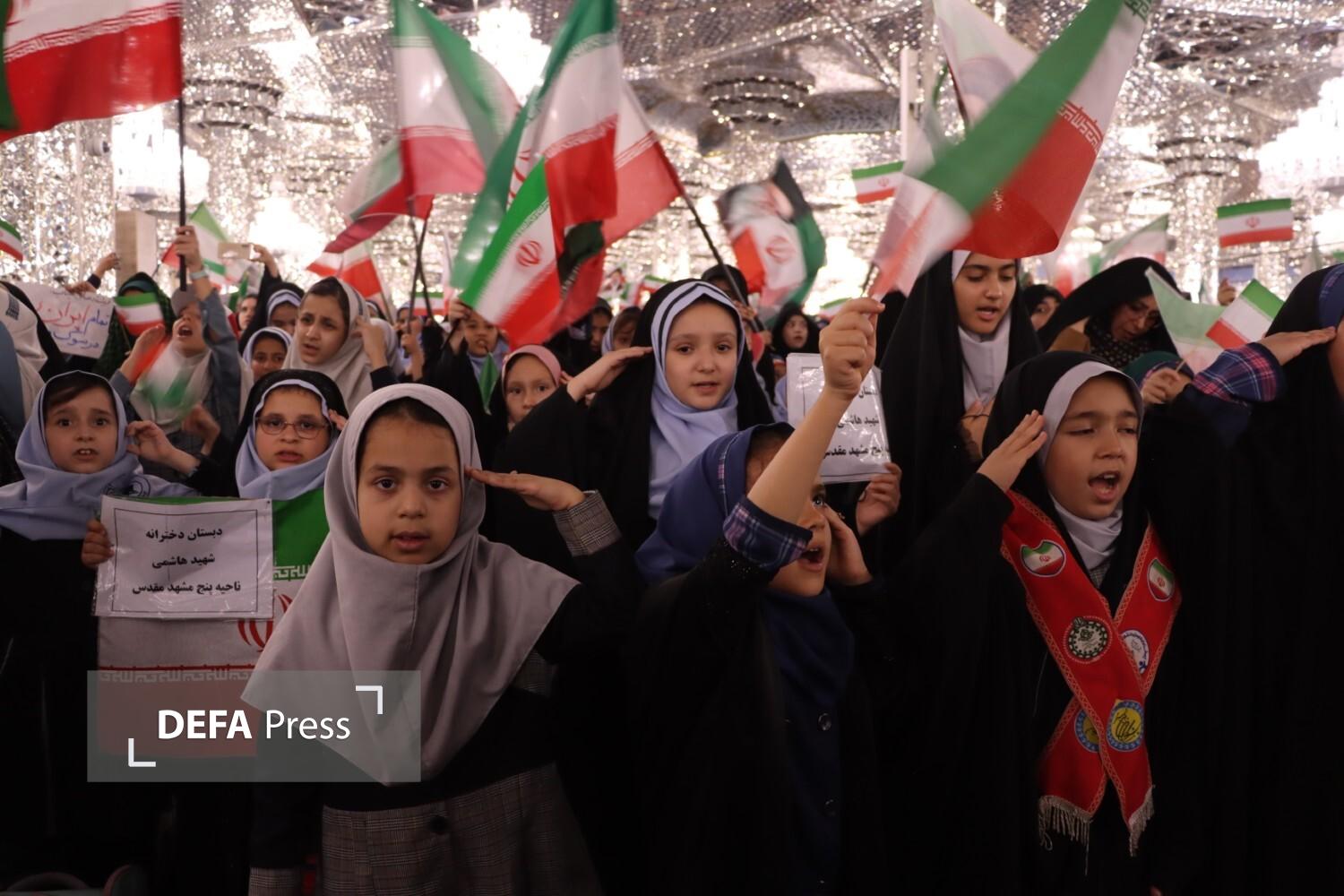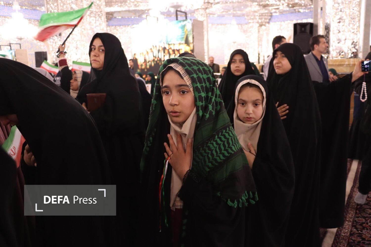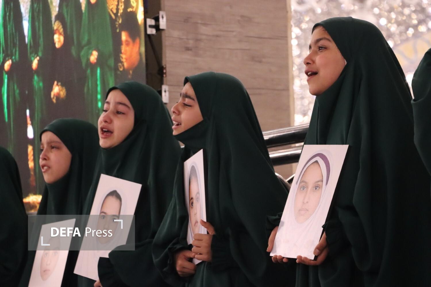 مراسم چهلمین روز شهادت دانش‌آموزان مدرسه «شجره طیبه» شهرستان میناب به دست باند جنایتکار آمریکایی ـ صهیونی؛ با حضور دانش‌آموزهای مدارس مشهد در رواق درالمرحمه حرم مطهر رضوی برگزار شد.