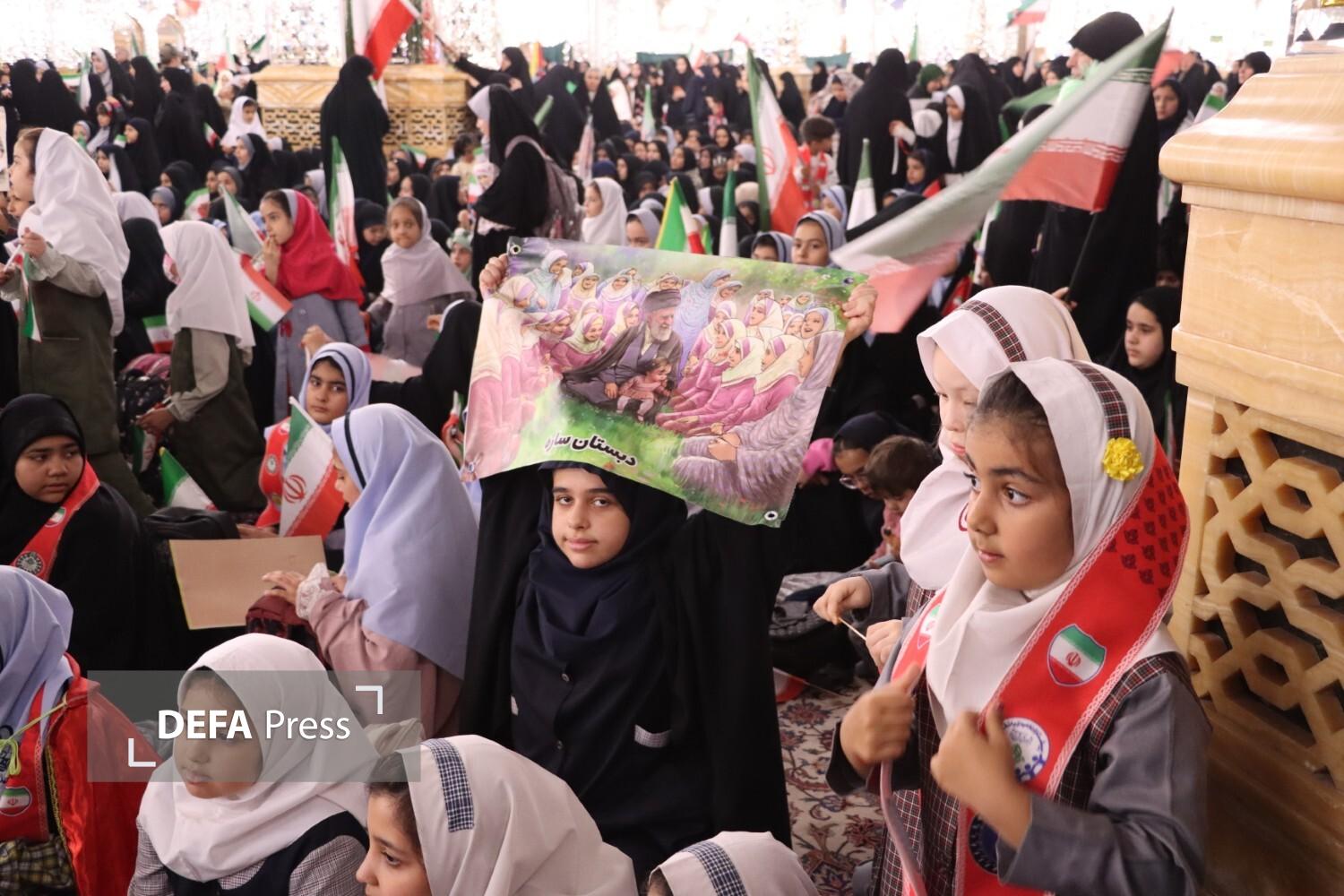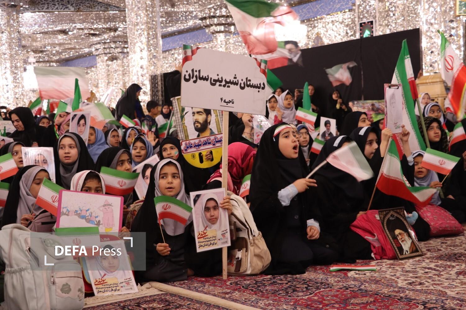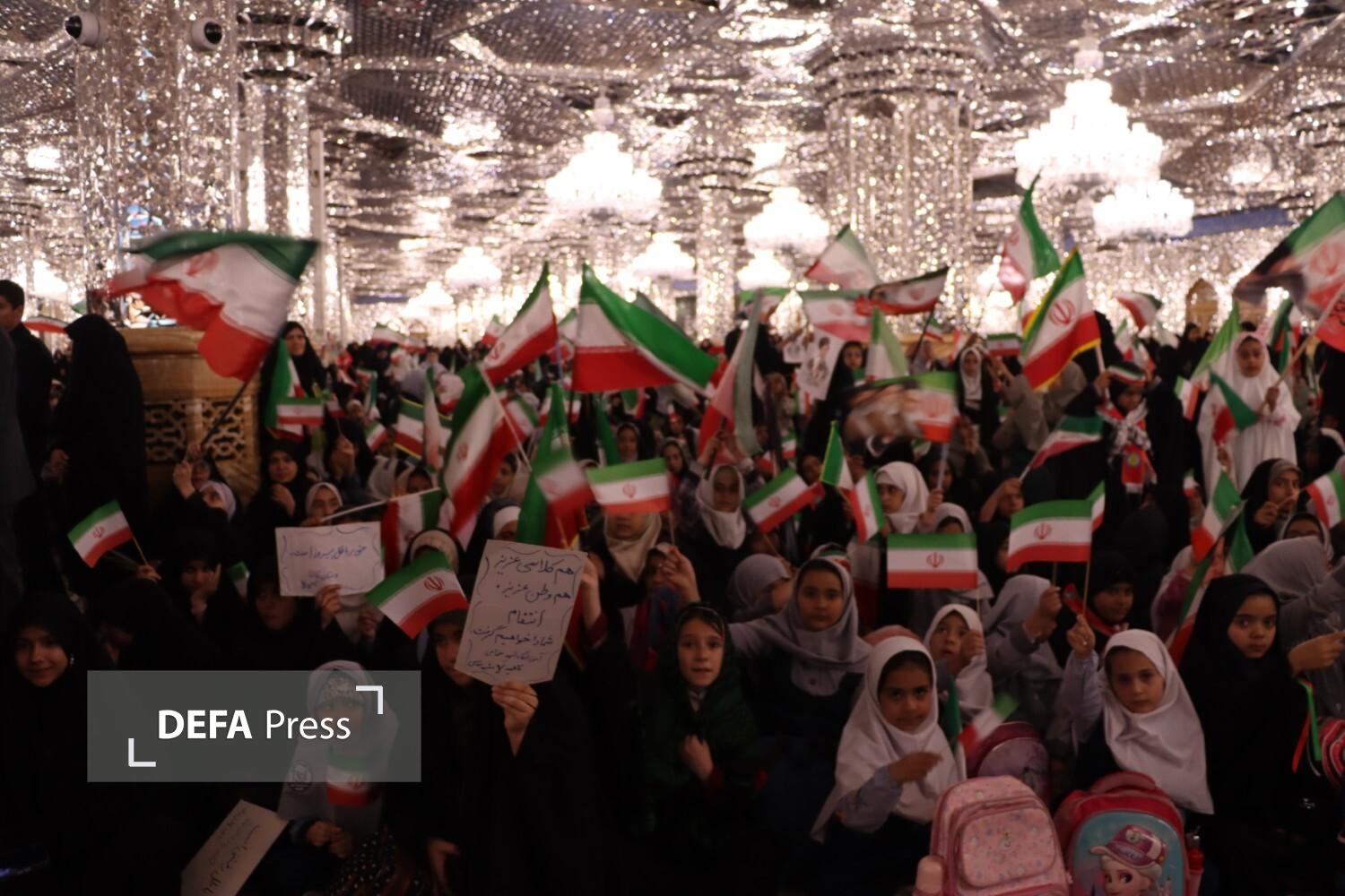 مراسم چهلمین روز شهادت دانش‌آموزان مدرسه «شجره طیبه» شهرستان میناب به دست باند جنایتکار آمریکایی ـ صهیونی؛ با حضور دانش‌آموزهای مدارس مشهد در رواق درالمرحمه حرم مطهر رضوی برگزار شد.
