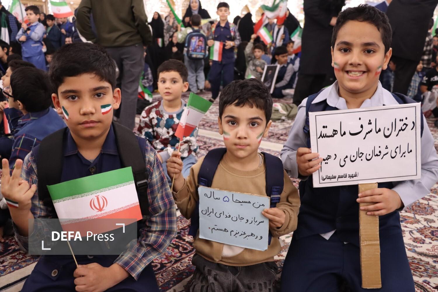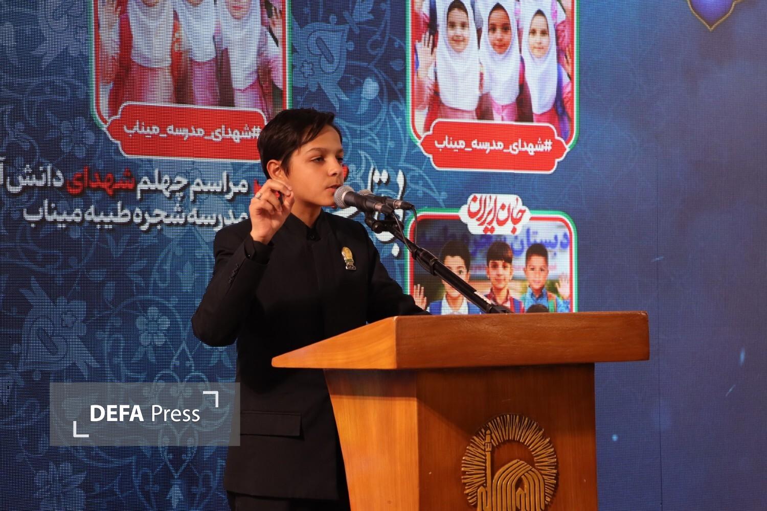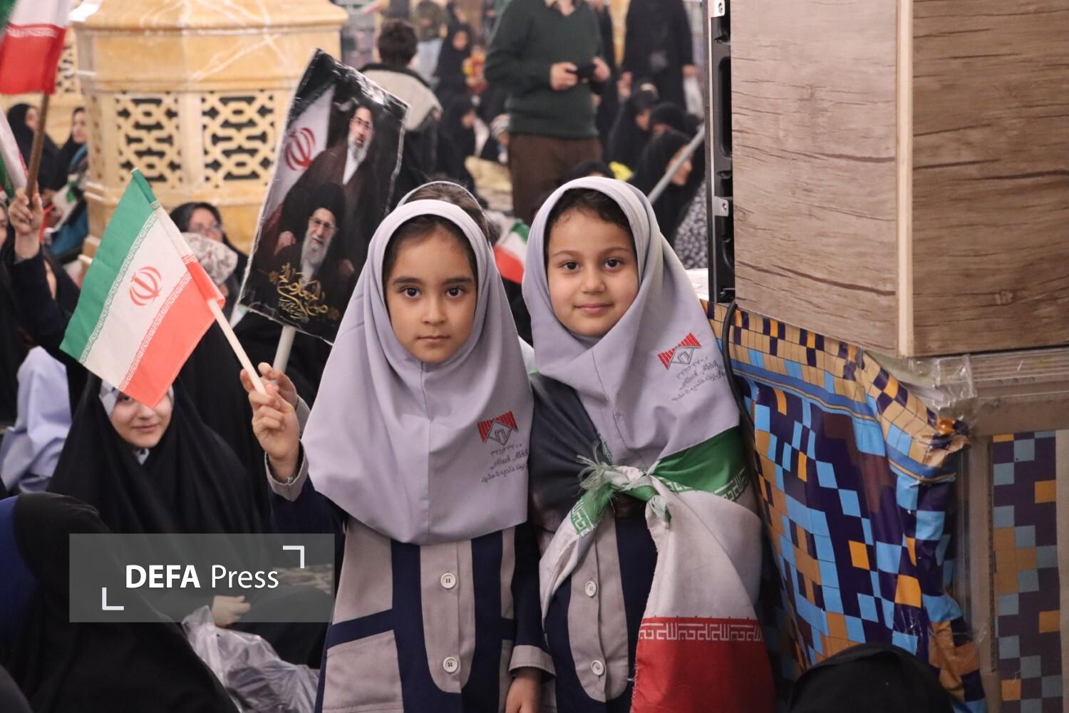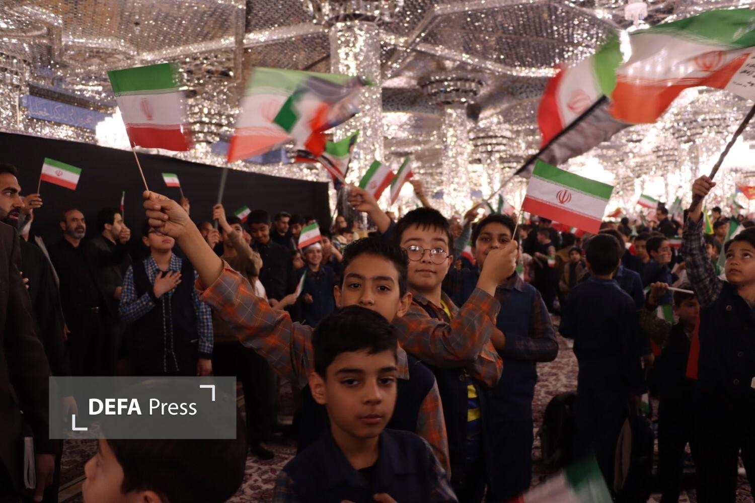 مراسم چهلمین روز شهادت دانش‌آموزان مدرسه «شجره طیبه» شهرستان میناب به دست باند جنایتکار آمریکایی ـ صهیونی؛ با حضور دانش‌آموزهای مدارس مشهد در رواق درالمرحمه حرم مطهر رضوی برگزار شد.