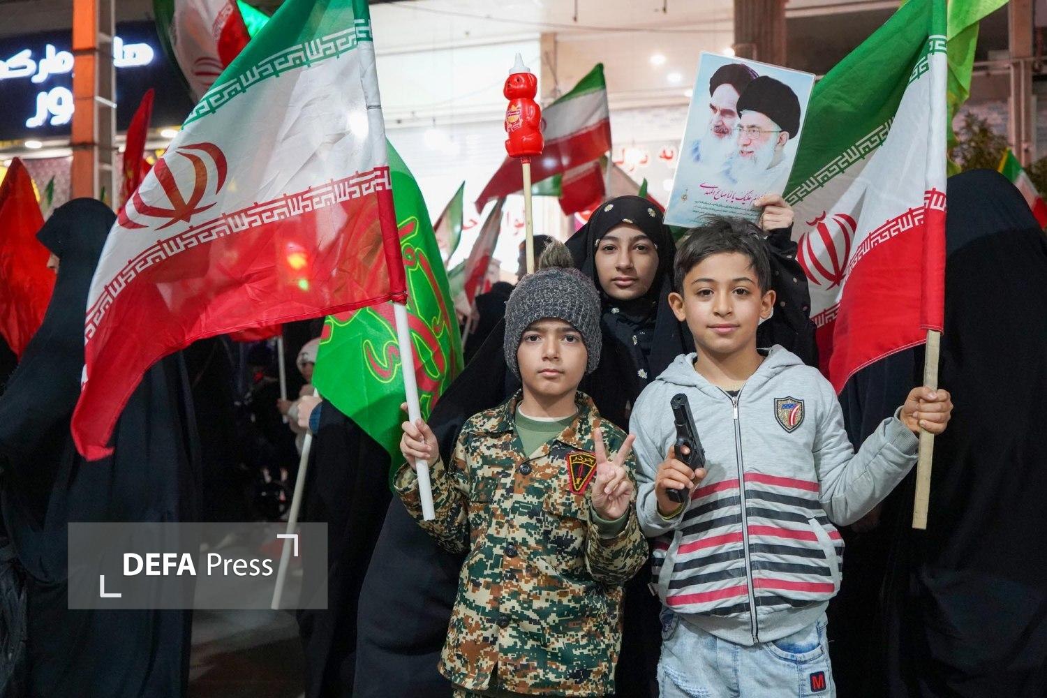 تصاویر/ دهه نودی‌های شیراز در چهلمین شب از تجمعات در بیعت از رهبری و پشتیبانی از نیرو‌های مسلح میدانداری کردند و پا به پای بزرگتر‌ها با حمل پرچم و عکس رهبری از وطن در مقابل دشمنان قسمم خورده محافظت کردند.