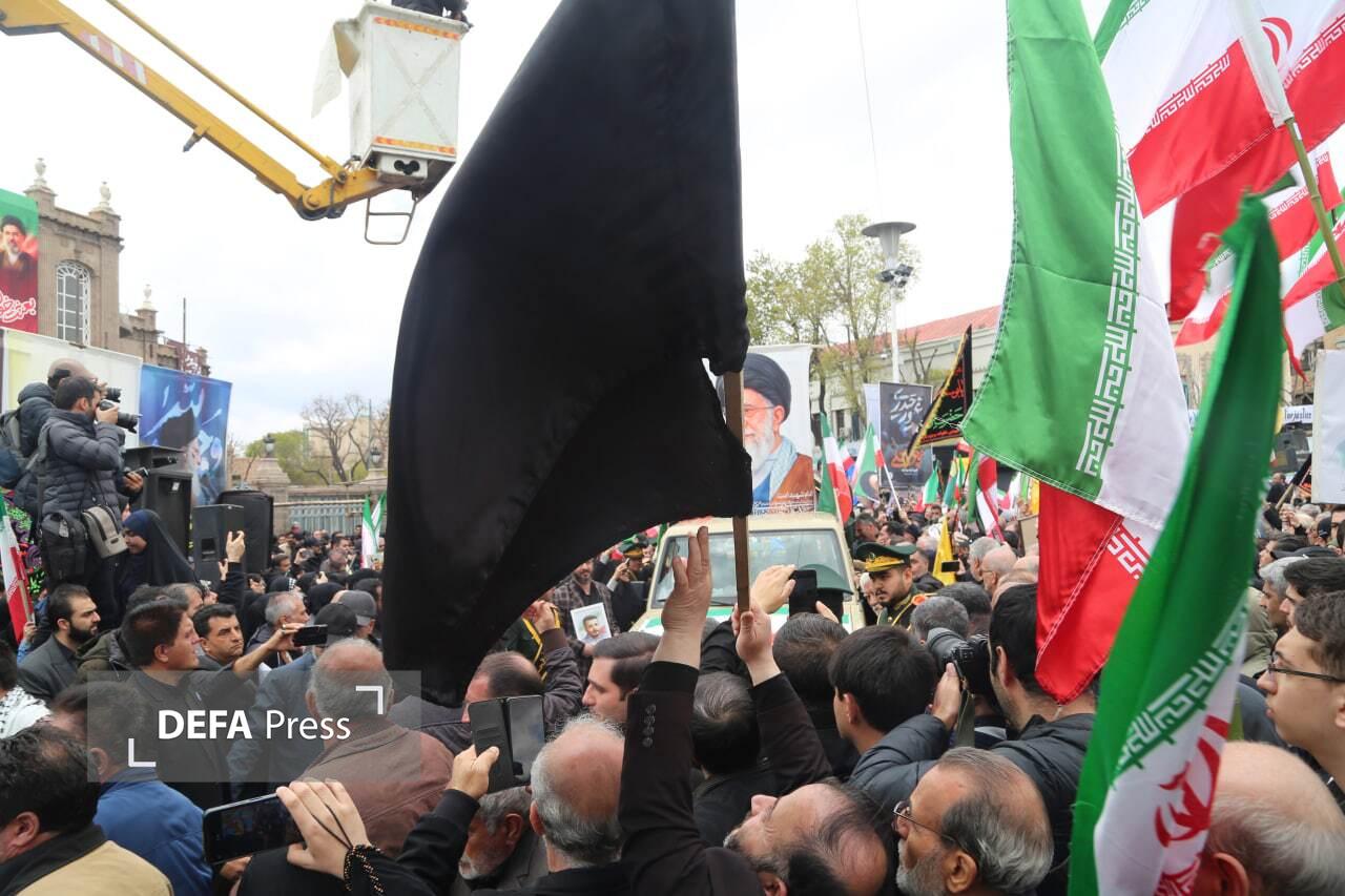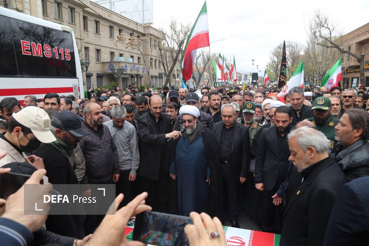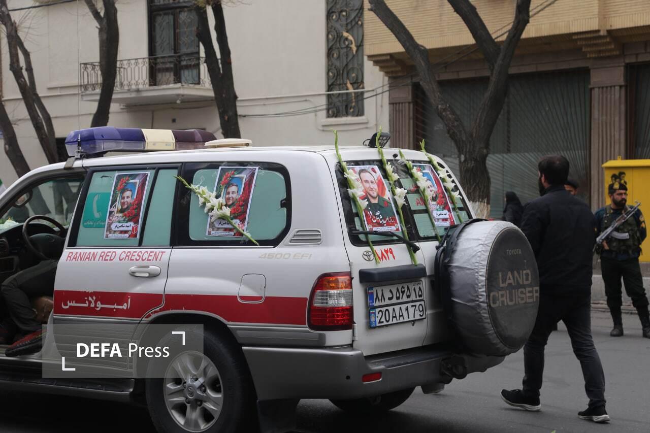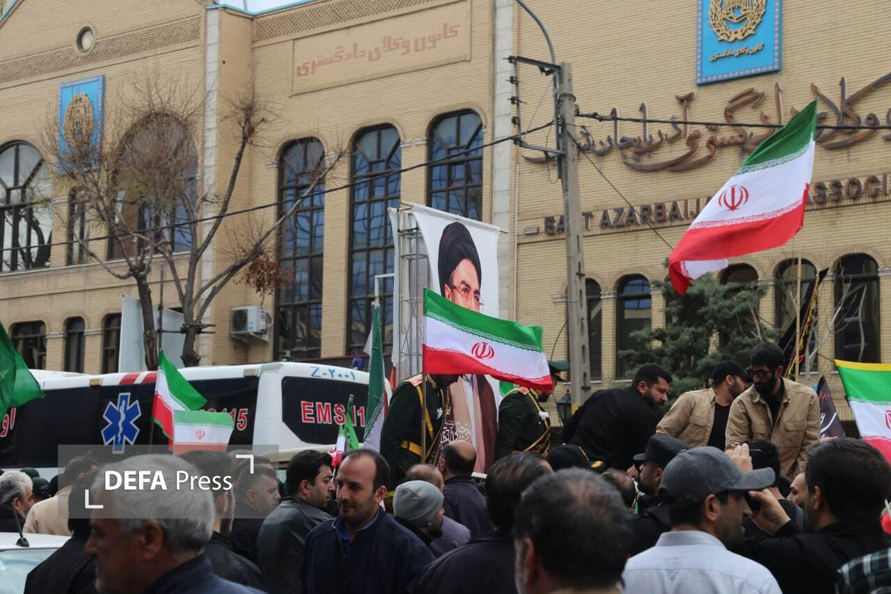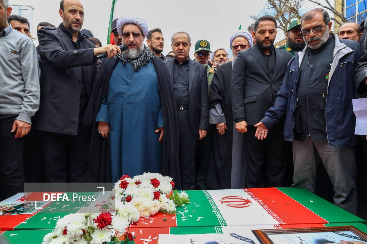 تصاویر/ آیین تشییع دو شهید جنگ رمضان همزمان با اربعین رهبر شهید قائد امت در تبریز
