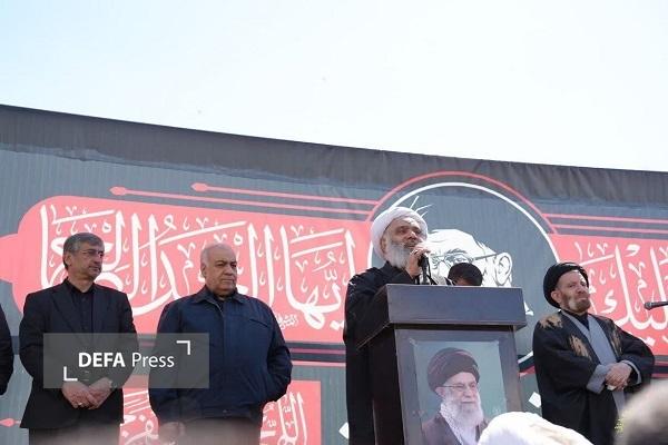 به گفته وی امروز مردم ایران در تمام ساحت‌ها جهاد کرده‌اند، به خونخواهی امام شهید و محبوب خود در خیابان‌ها حاضر هستند و هر چه ملعون قمارباز تهدید می‌کند جمعیت بیشتر می‌شود.