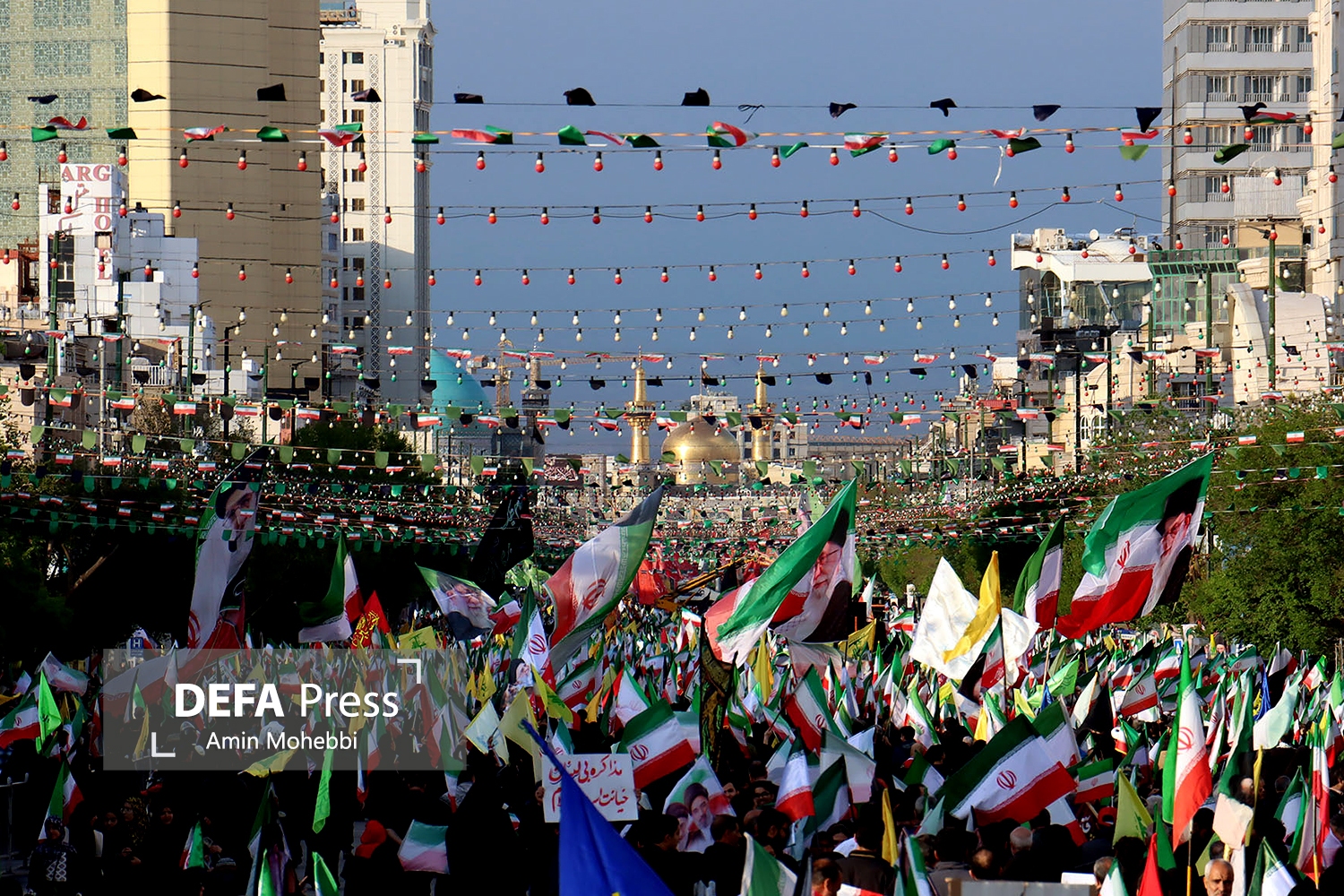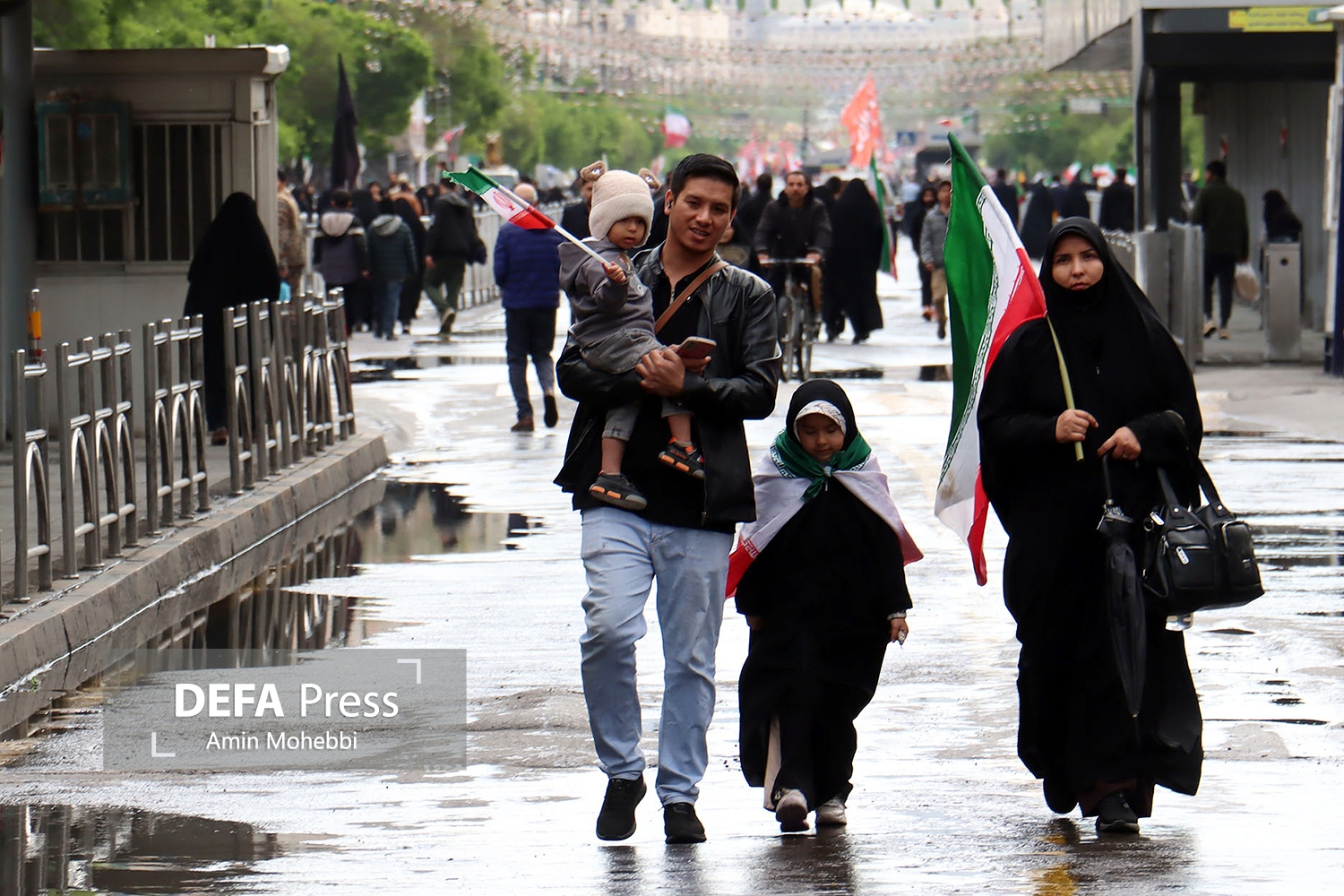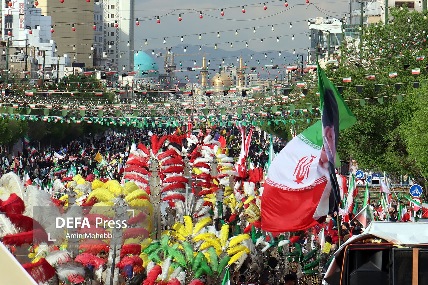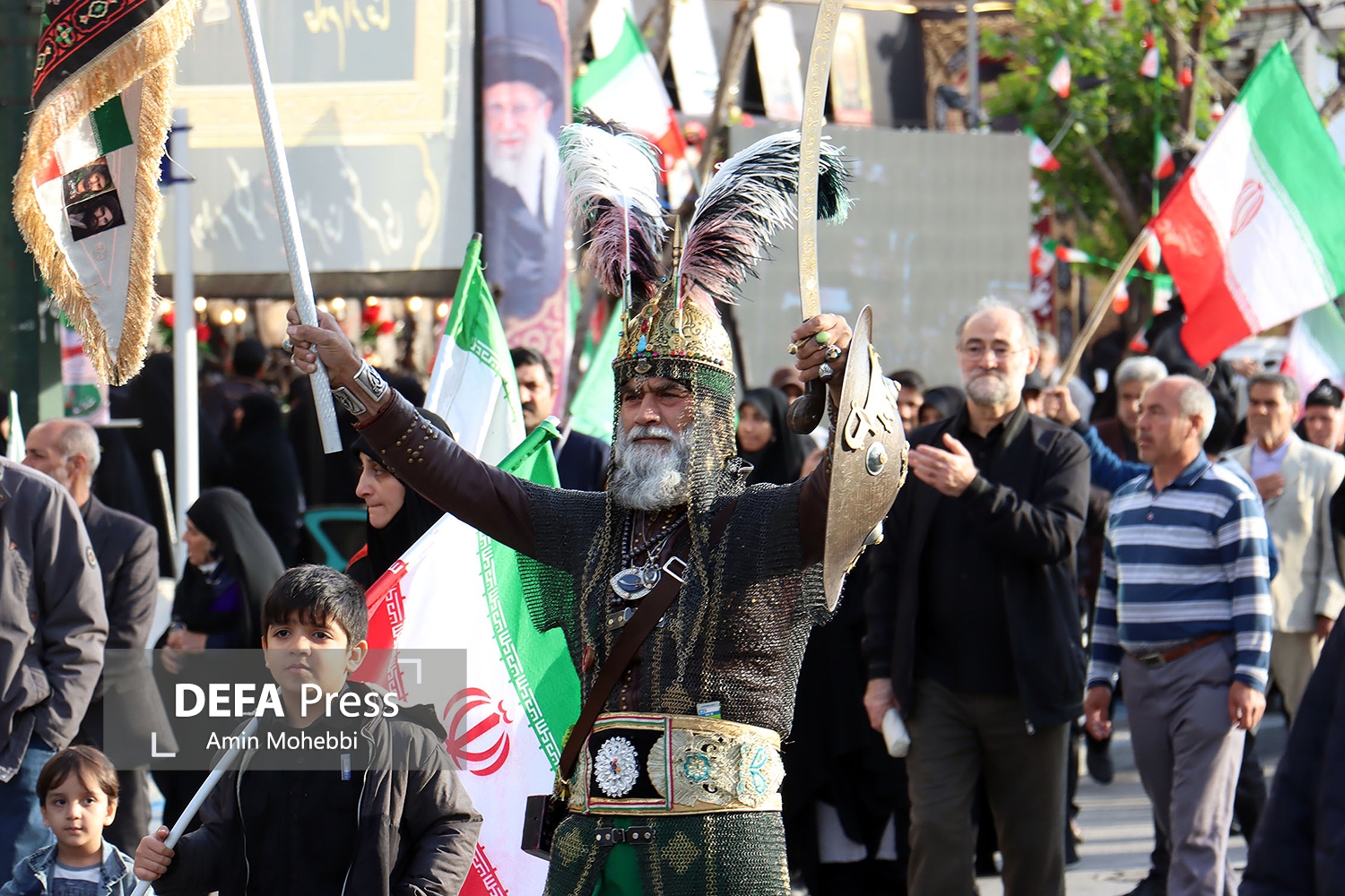 همزمان با اربعین شهادت امام خامنه ای رهبر شهید عصر پنجشنبه دسته های عزاداری متشکل از اقشار مختلف مردم مشهد حرکت خود را از میدان بسیج این شهر تا حرم مطهر رضوی آغاز کردند.
