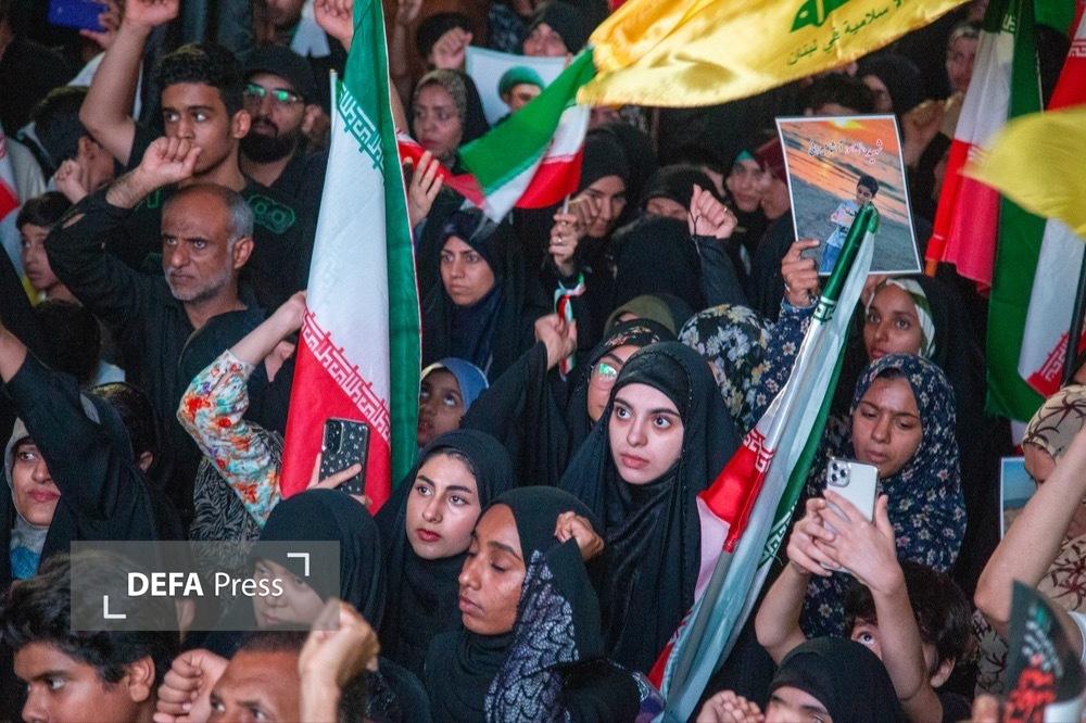 تصاویر/اجتماع چهل و چهارم مردم بندرعباس به خونخواهی امام شهید و دانش اموزان مدرسه شجره با حضور سیدرضا نریمانی