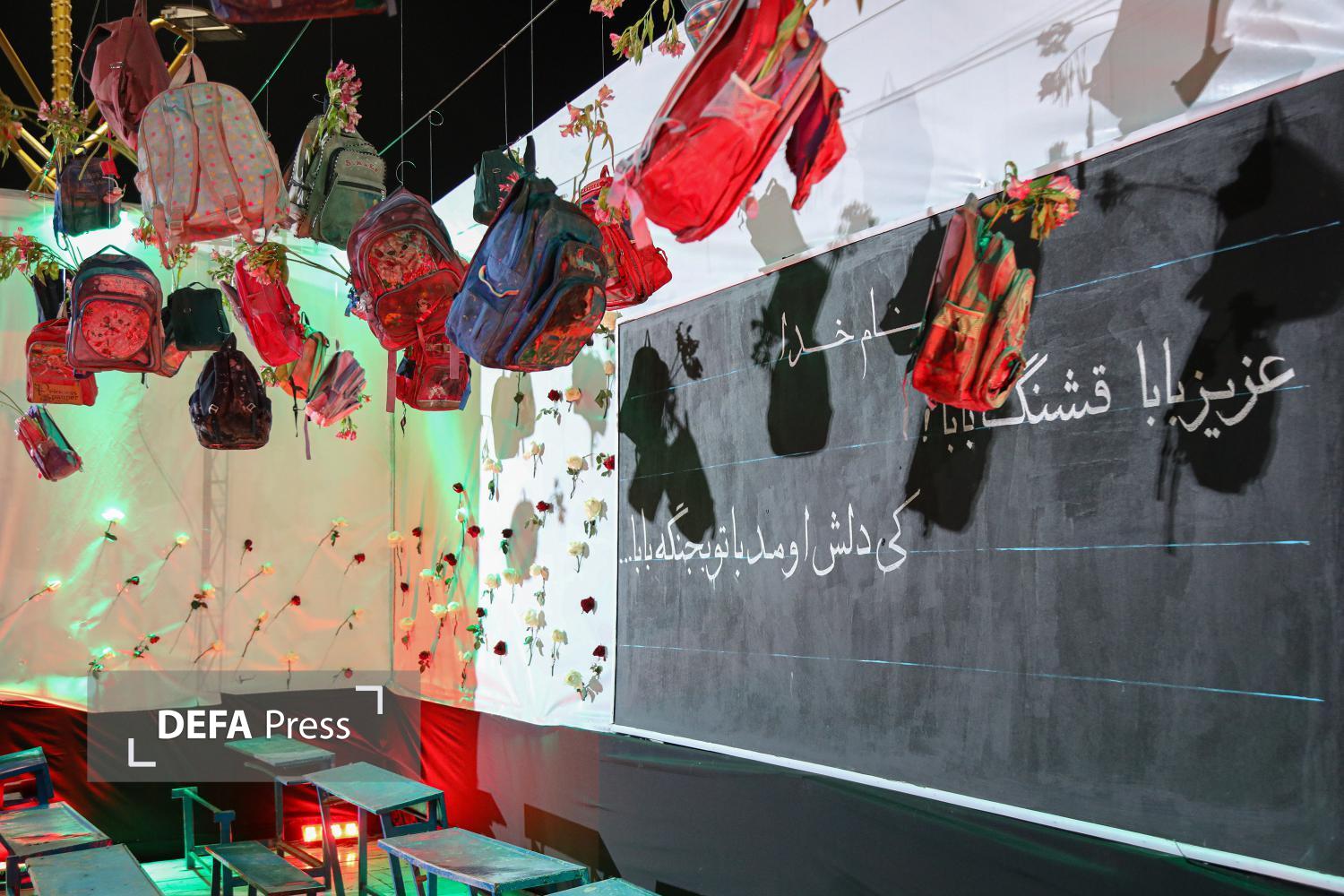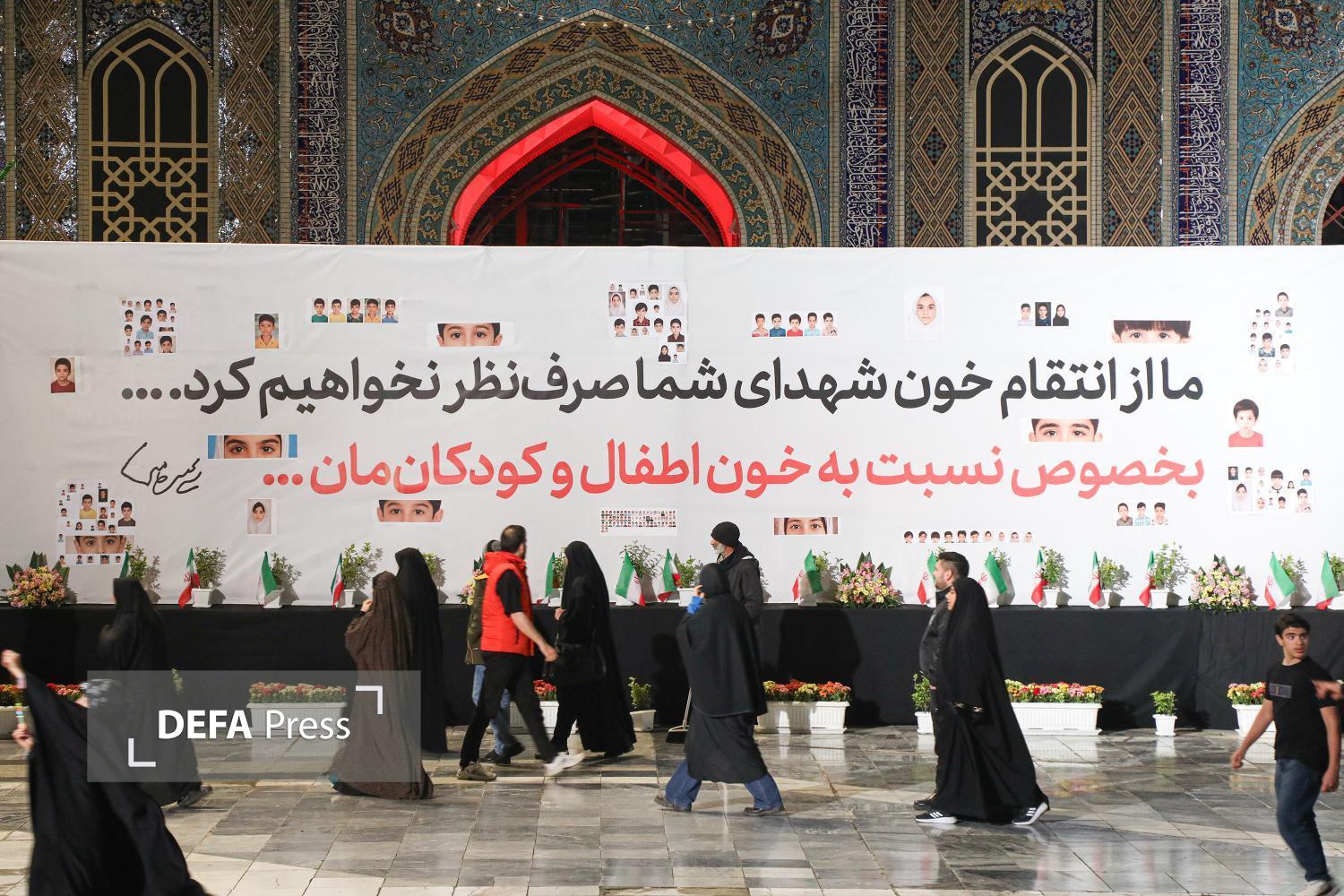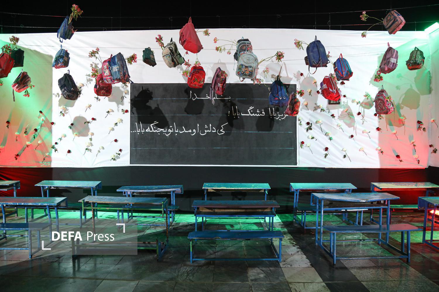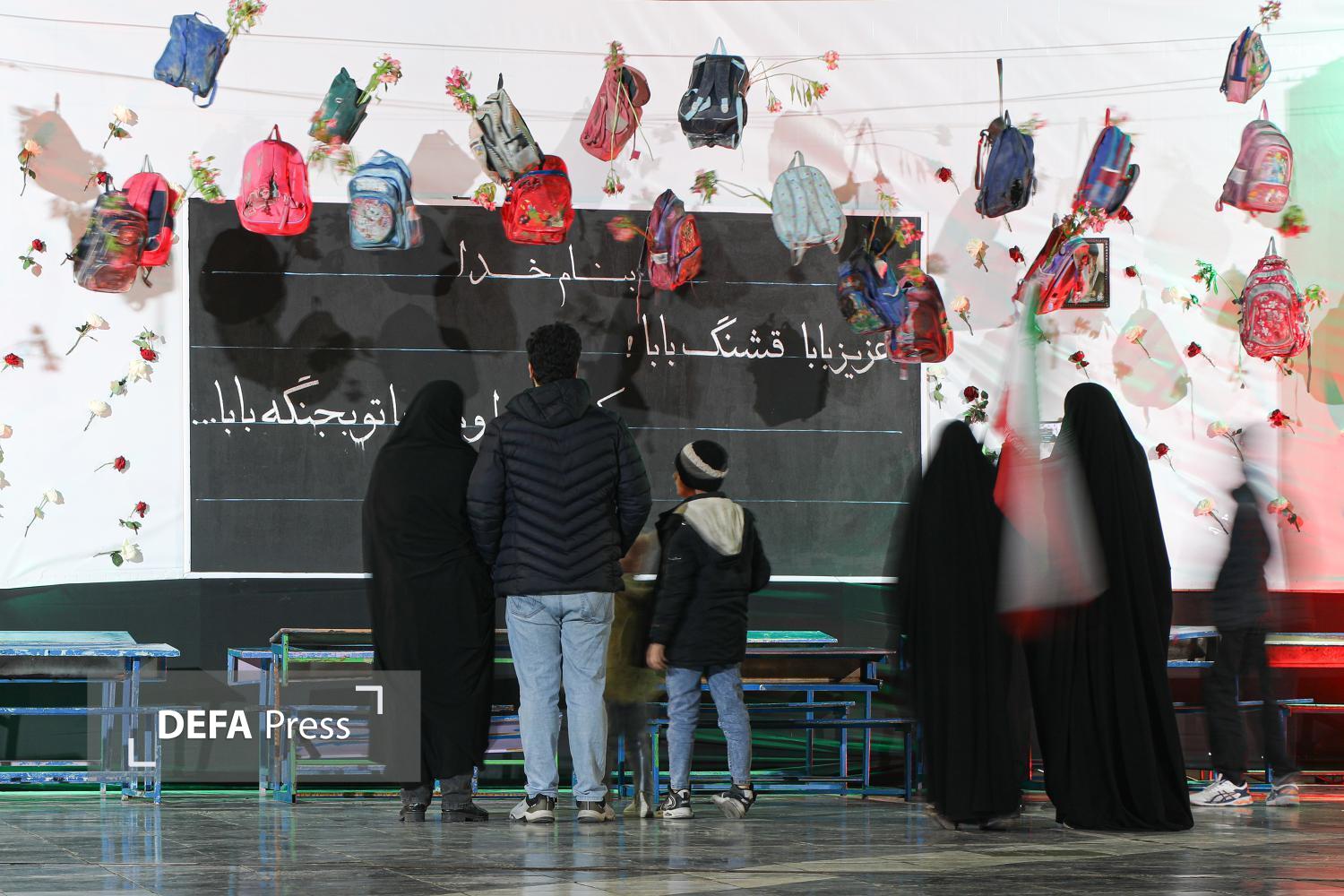 به مناسبت چهلمین روز شهادت دانشآموزان مدرسه شجره طیبه میناب، دیوار نگاره تصاویر شهدای مظلوم این مدرسه و نمادی از کلاس درسشان به همراه جمله تاکید مقام معظم رهبری بر گرفتن انتقام این عزیزان در صحن پیامبر اعظم صلی الله علیه و آله حرم مطهر رضوی به اجرا در آمده است.