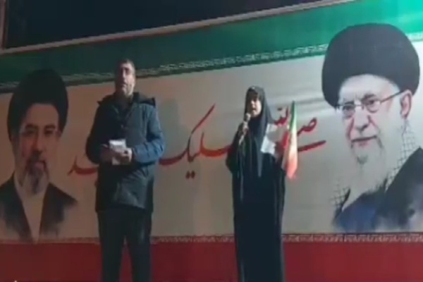 در چهارمین شب از اربعین رهبر شهید و شهدای جنگ رمضان، بانوی نوجوان بیجاری در جریان اجتماعات خیابانی مردمی میدان شهید رحمانی به رجزخوانی پرداخت.