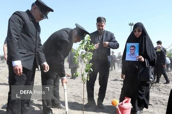 در بخش دیگری از این آیین، مادر شهید «سید حسین حسینی شاد» هم نهالی را به نیابت از فرزند شهید خود، غرس کرد.