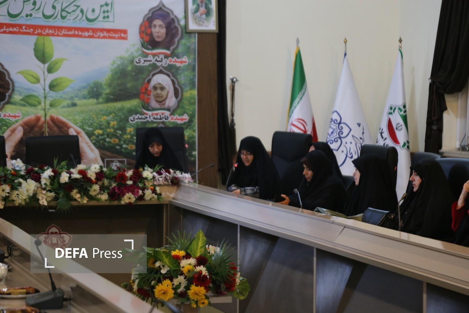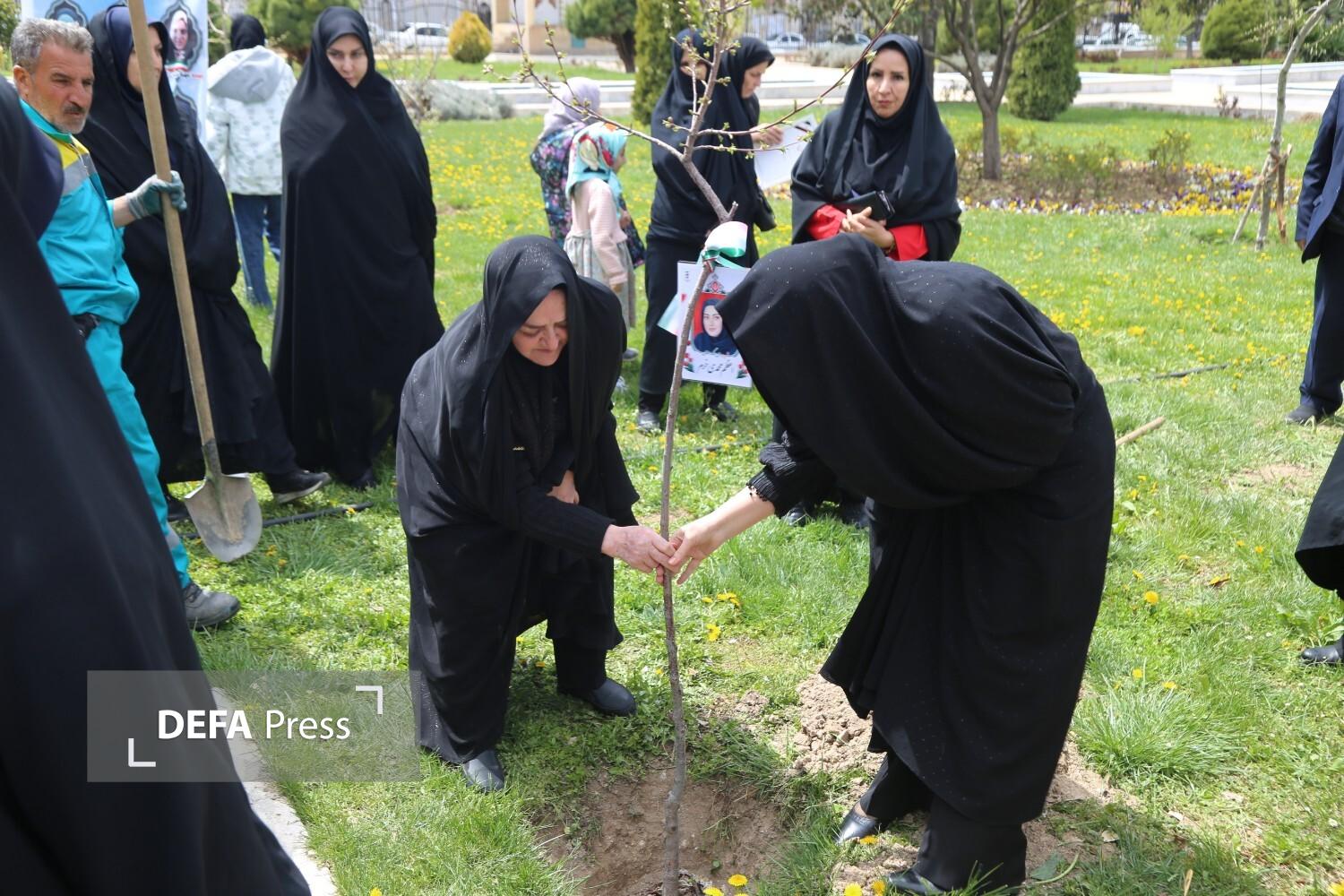 آیین درختکاری رویش مهر به یاد شهیدههای جنگ رمضان در زنجان برگزار شد.