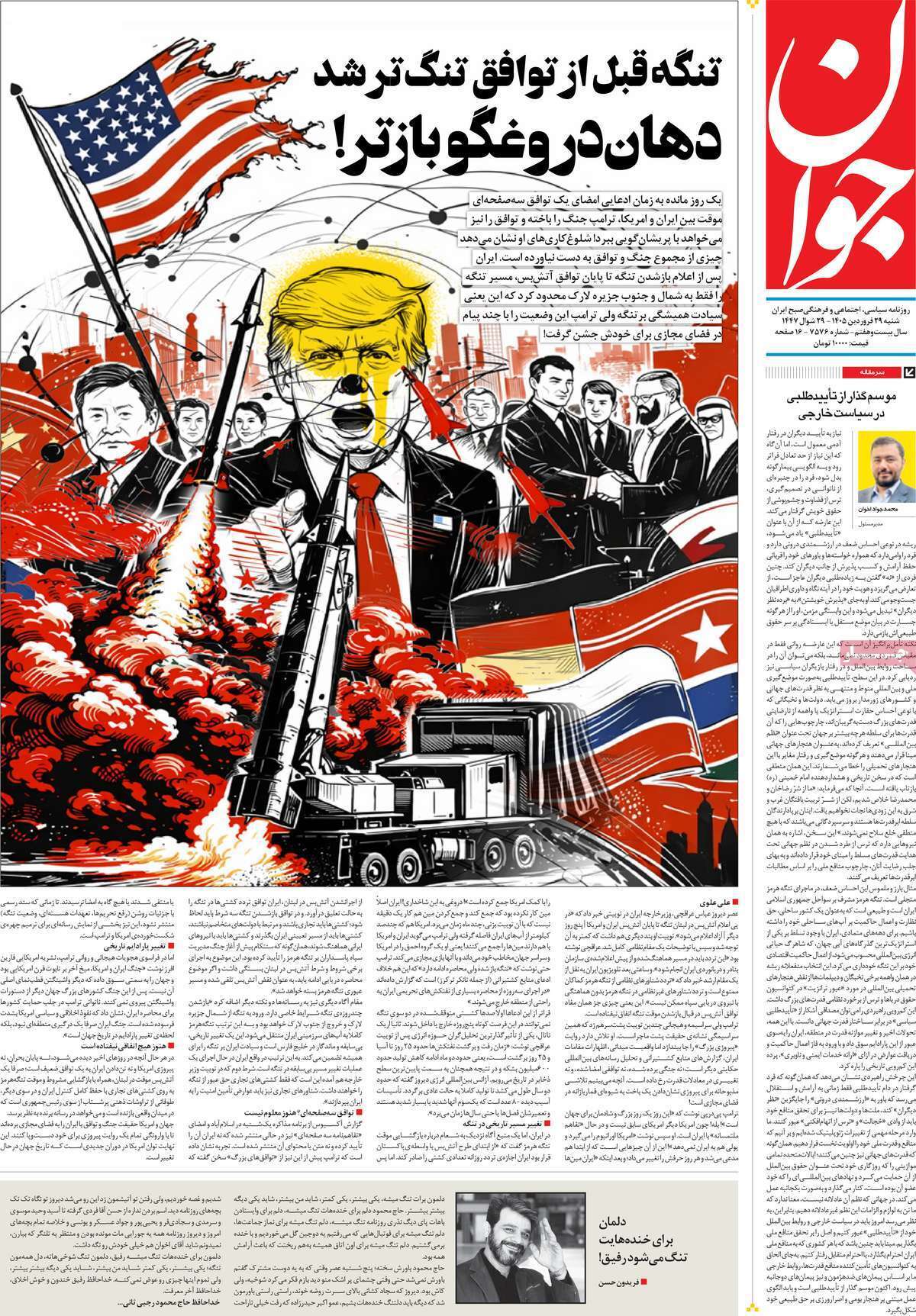 روزنامههای بیستونهم فروردین ۱۴۰۵