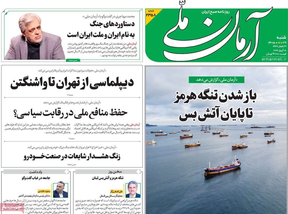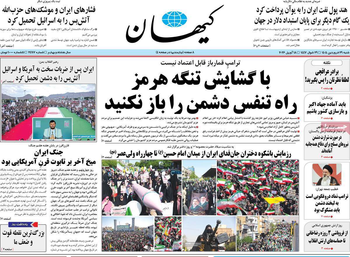 روزنامههای هجدهم فروردین ۱۴۰۵