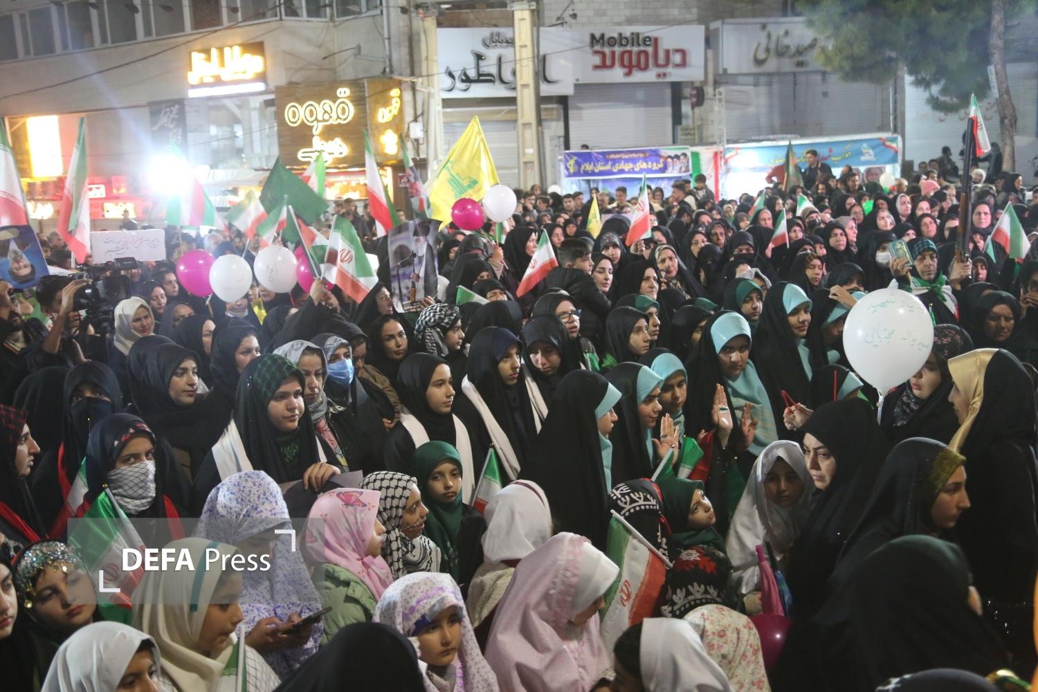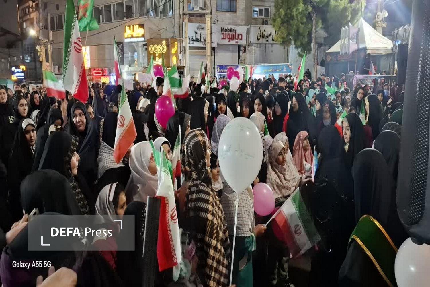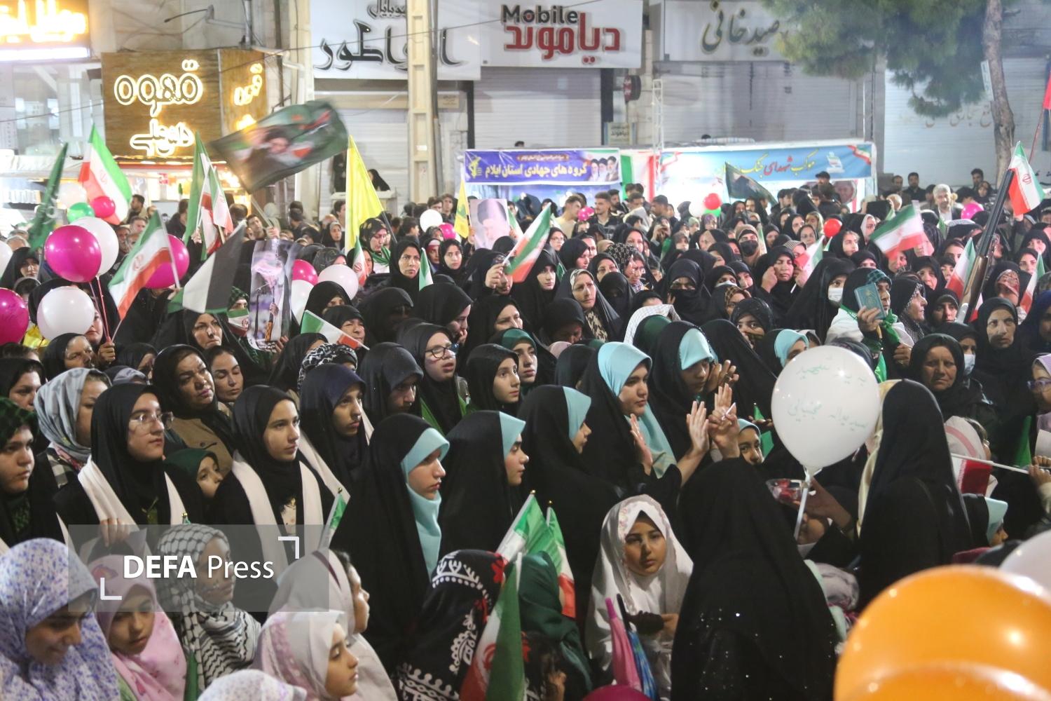 چهل و نهمین حماسه مردم ایلام در خیابان در شب میلاد حضرت فاطمه معصومه (س) با حضور پرشور دختران ایلامی در زیر باران رحمت الهی صحنهایی زیبا از همبستگی و حضور اجتماعی به نمایش گذاشته شد.