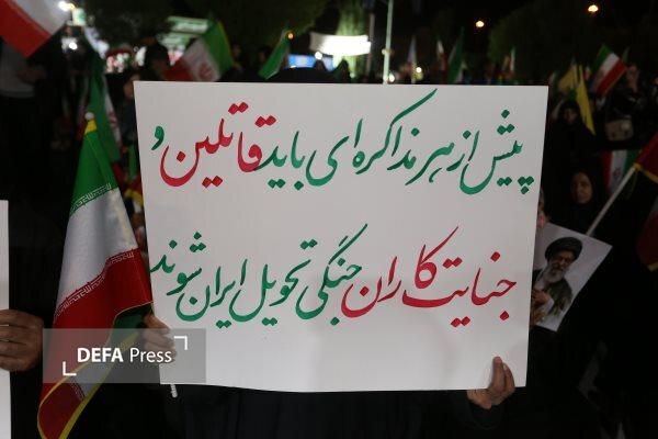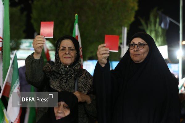 درچهل و نهمین شب پیاپی حضور در خیابانها و میادین شهر، مردم اصفهان به صورت نمادین به خاطر جنایات صورت گرفته آمریکایی صهیونی کارت قرمز به ترامپ دادند.