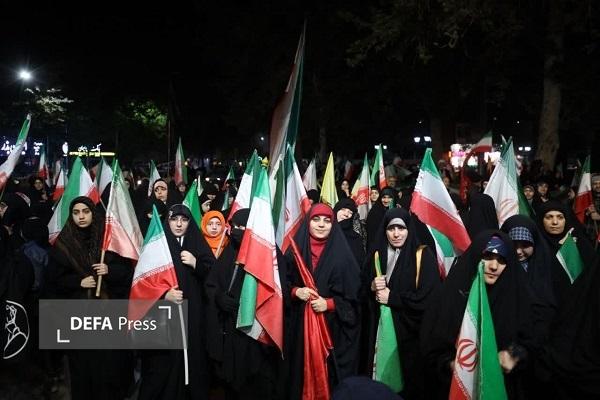 یکی از بانوان شرقی این دیار، در یکی از شبهای آفتابی، نسبت به انگیزهی حضورش در خیابان چنین میگوید: «ما مبعوث شدهایم تا به دنیا نشان بدهیم؛ سرسبزی استقلال، سپیدی آزادی و سرخی دفاع از جمهوری اسلامی را، و بسیار خرسندیم، چون در این بعثت ما همه داریم قد میکشیم.»