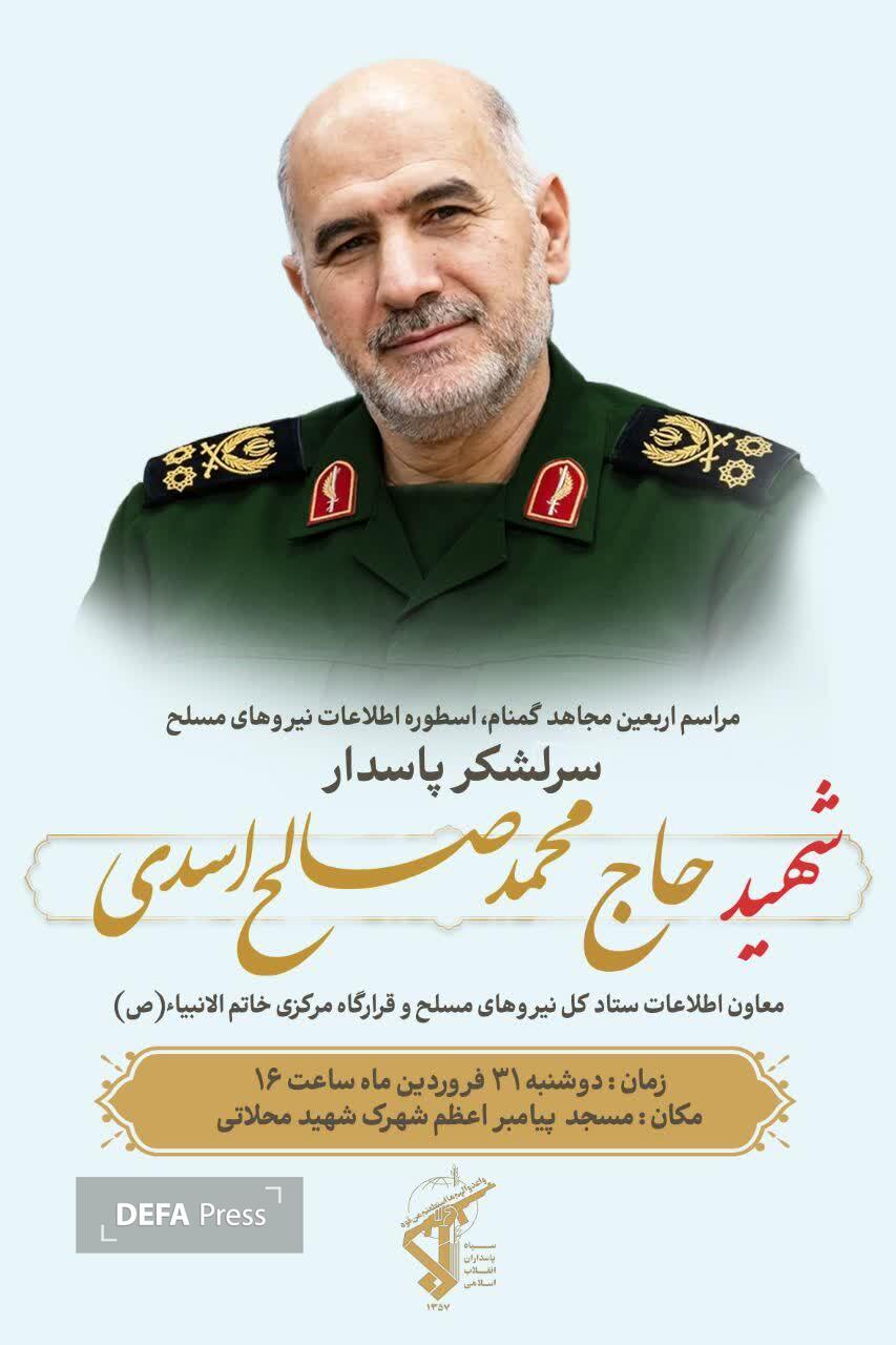 مراسم اربعین شهادت سردار سرلشکر محمد صالح اسدی برگزار می‌شود