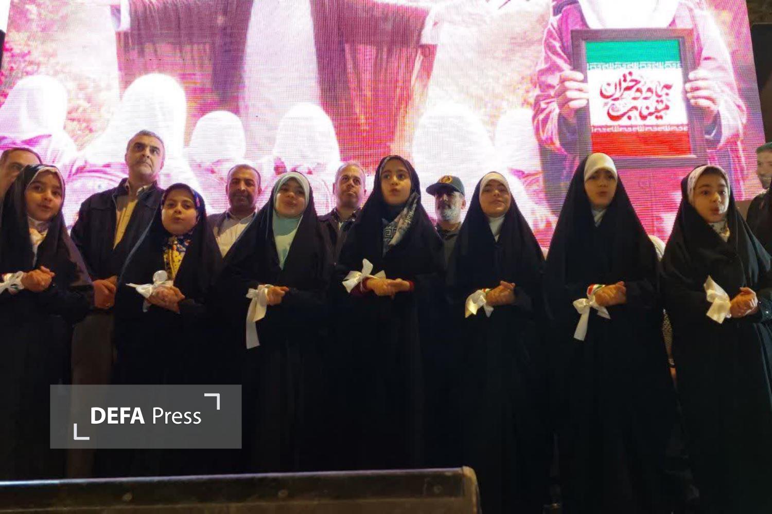 همزمان با چهل و نهمین شب از حماسه ماندگار حضور مردم ولایتمدار ایران اسلامی در سنگر میدان و در شب فرخنده میلاد با سعادت حضرت فاطمه معصومه (س) و روز دختر، اجتماع باشکوه دختران مهر و مقاومت با یاد و نام دختران دانش آموز شهید مدرسه شجره طیبه میناب، در میادین برگزار شد.