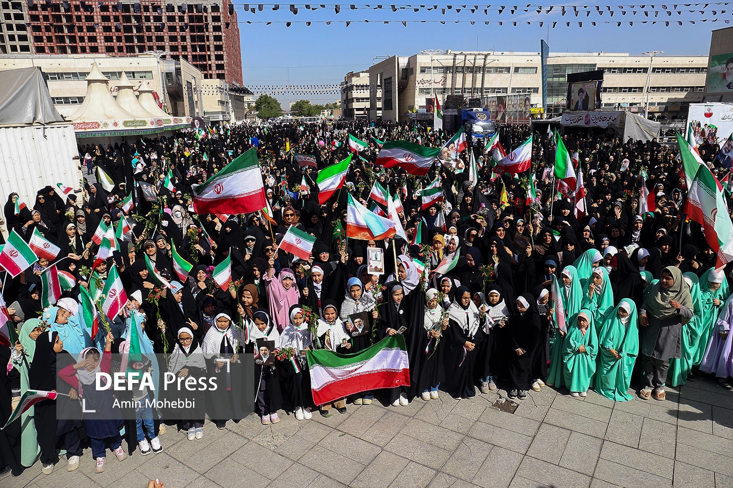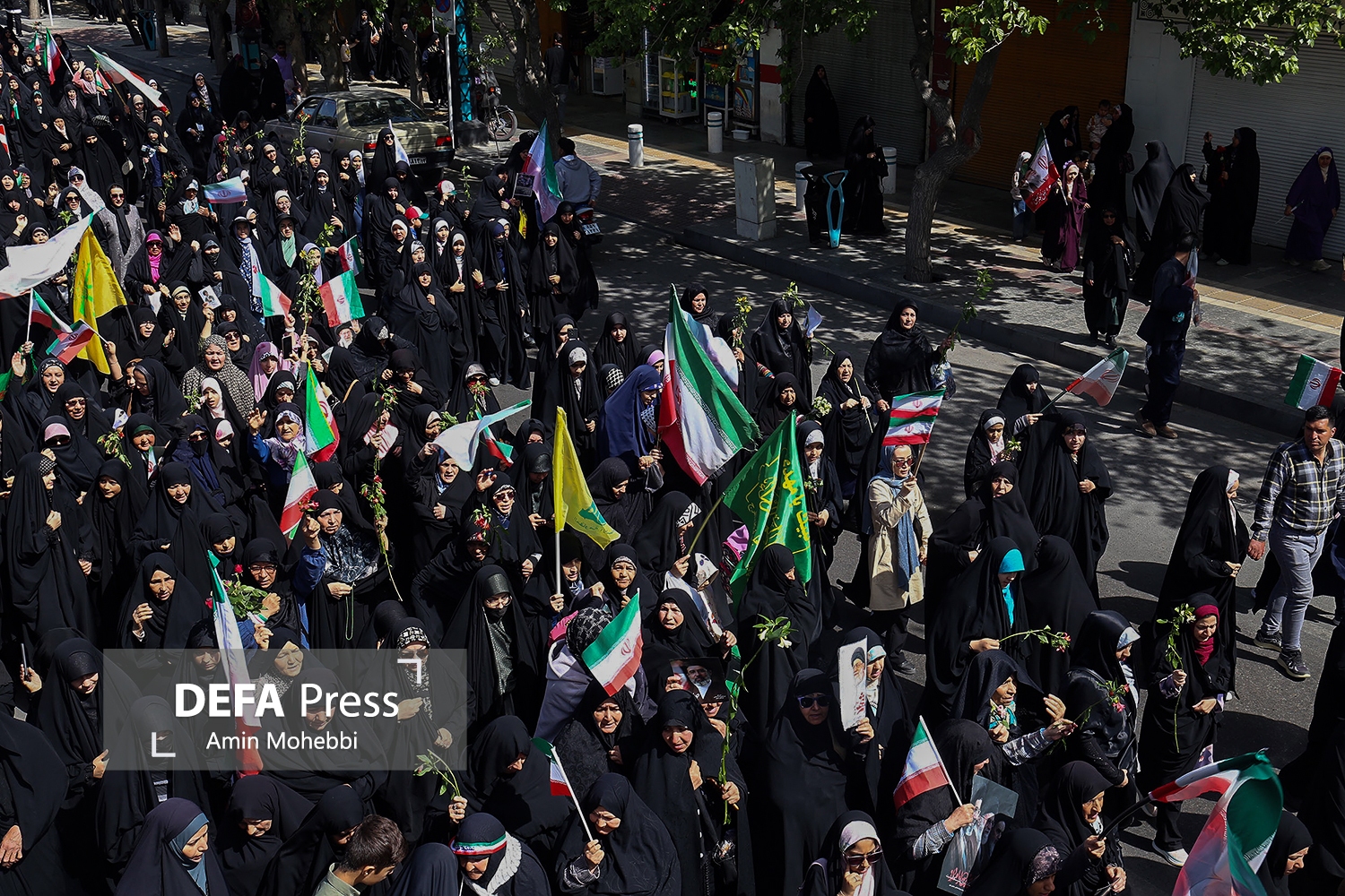 فیلم/ رزمایش بزرگ «دختران جانفدای ایران» در تهران؛ بیعت با رهبر انقلاب
