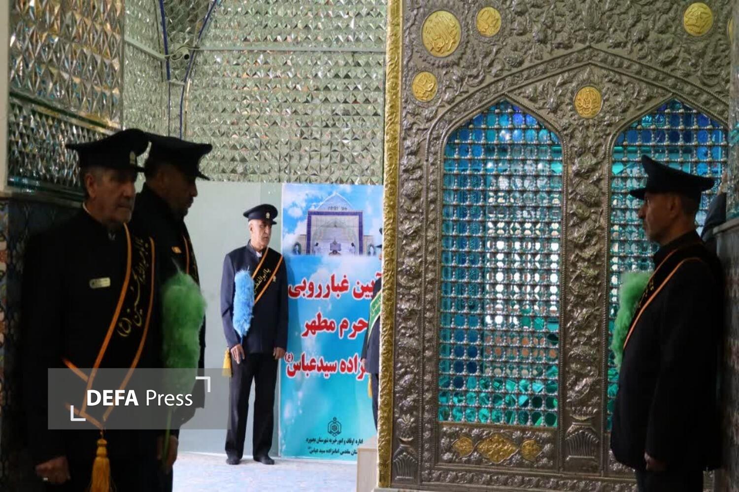 تصاویر/ غبارروبی ضریح مطهر حرم حضرت عباس بن موسی (ع)